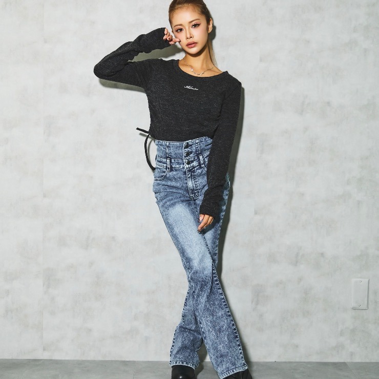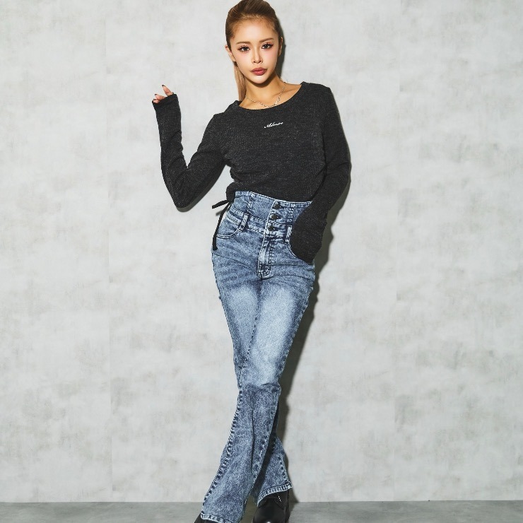 ハイウエストのフレアパンツは何枚持っていても良い万能アイテム。