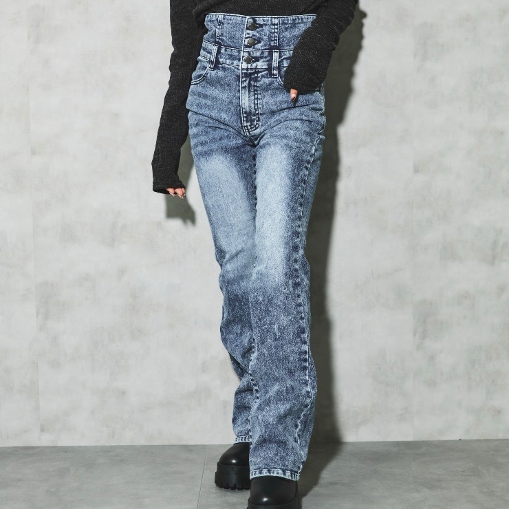 レディース ハイウエストデニムフレアパンツ(かとみか)