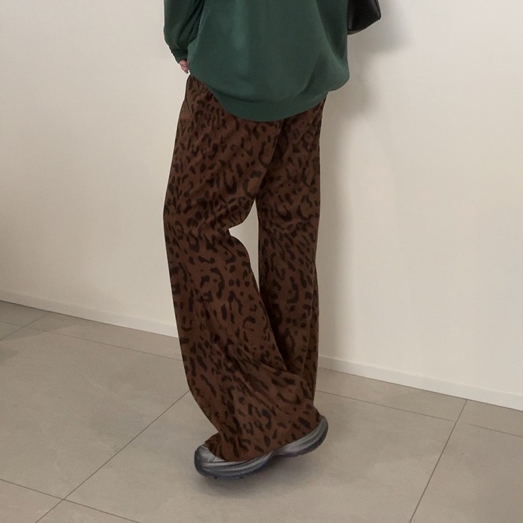 秋冬のスタイリングに合わせやすいコーデュロイヒョウ柄フレアパンツ