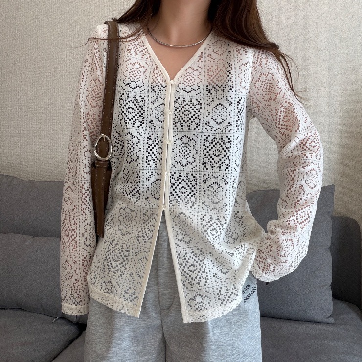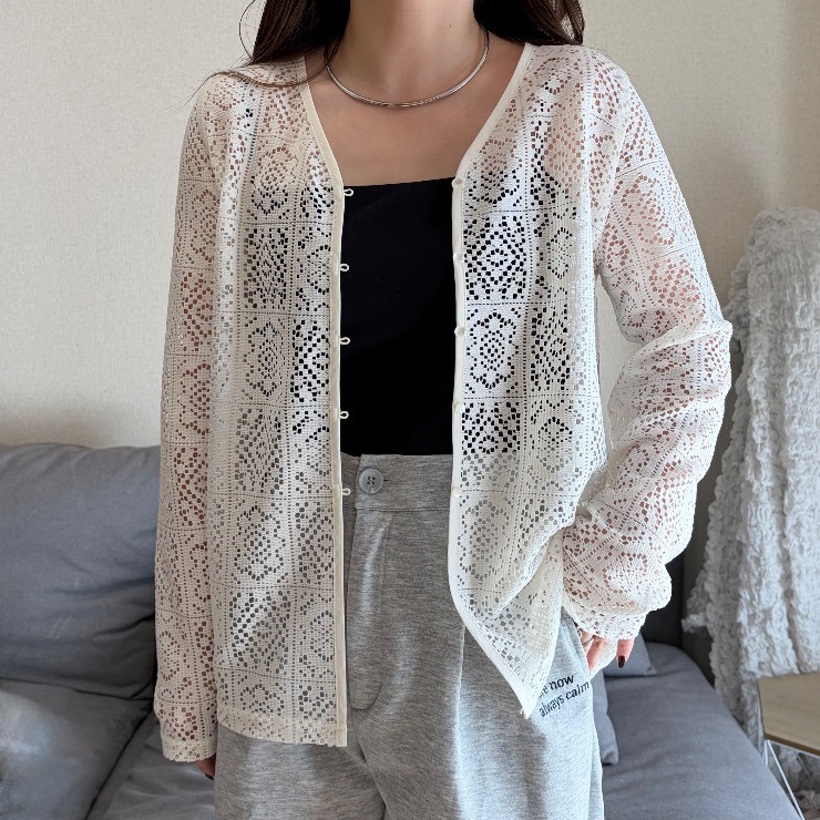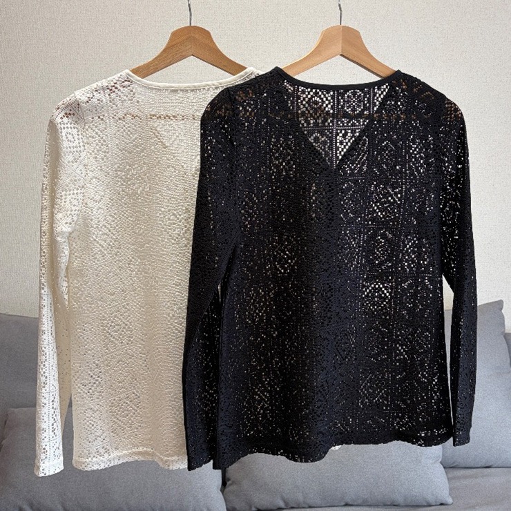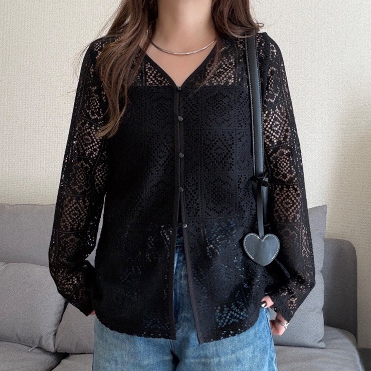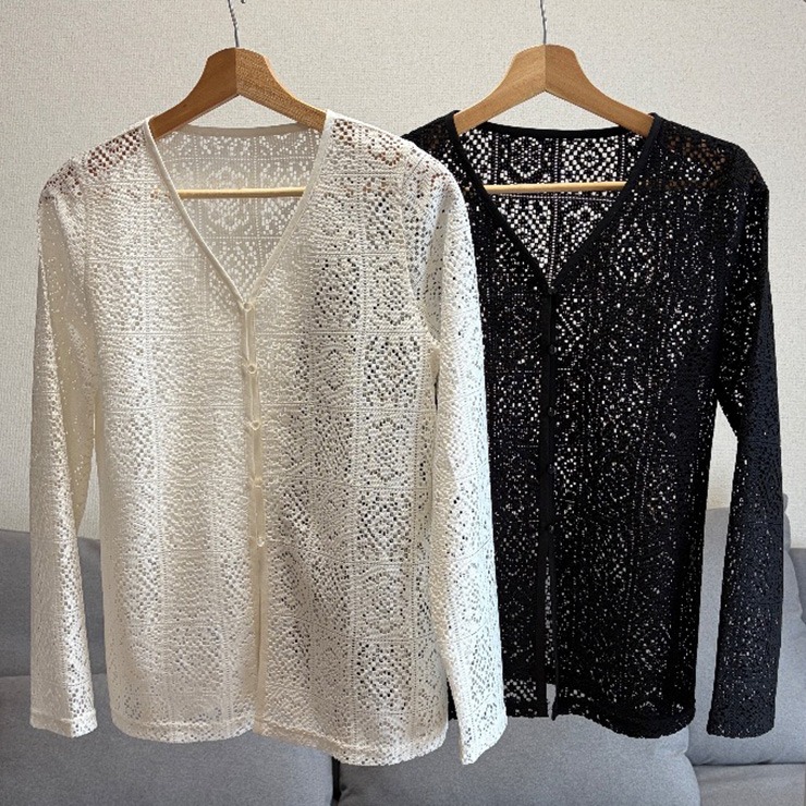 羽織るだけで華やかになるクロシェ風レースなのがポイント。