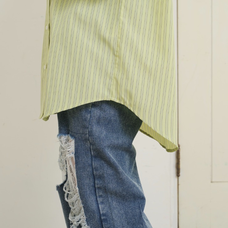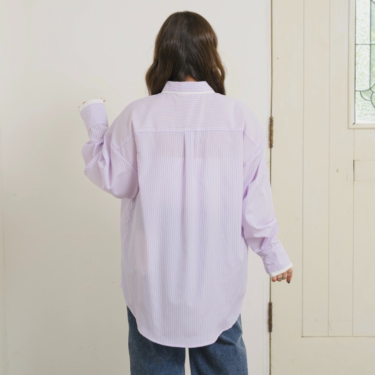 "一枚で垢抜ける、レイヤード風ストライプシャツ"