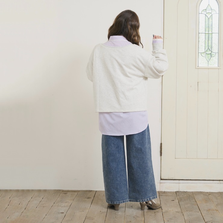 レディース レイヤード風ストライプシャツ(Taiyou)