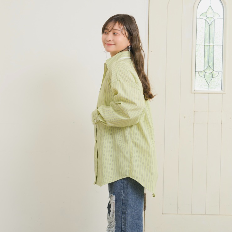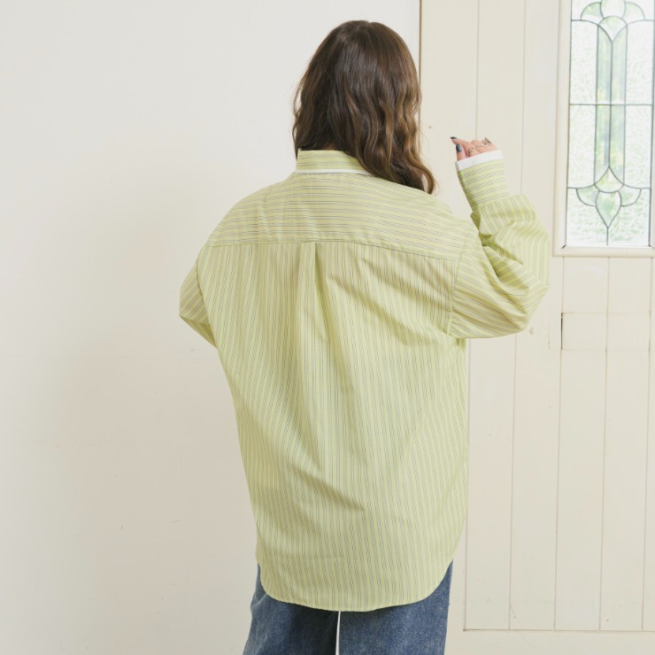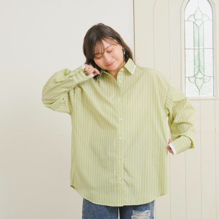"一枚で垢抜ける、レイヤード風ストライプシャツ"