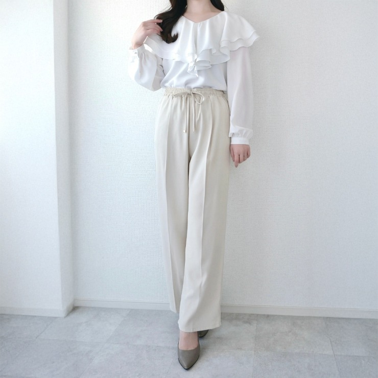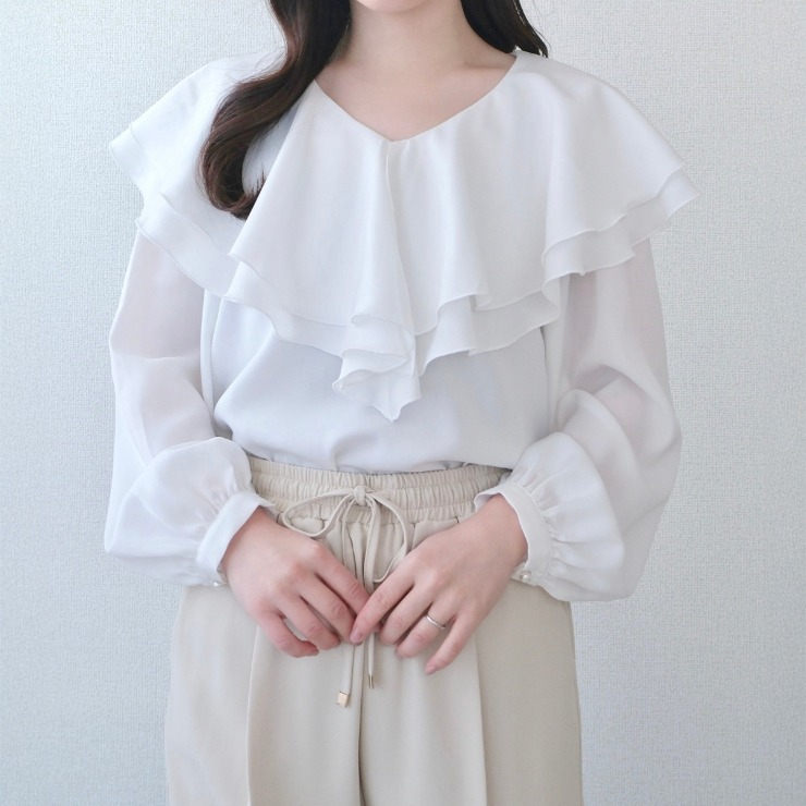 ケープ風のフリルが女性らしい印象に◎