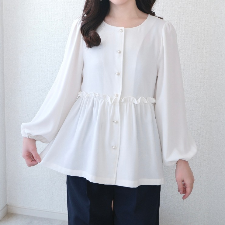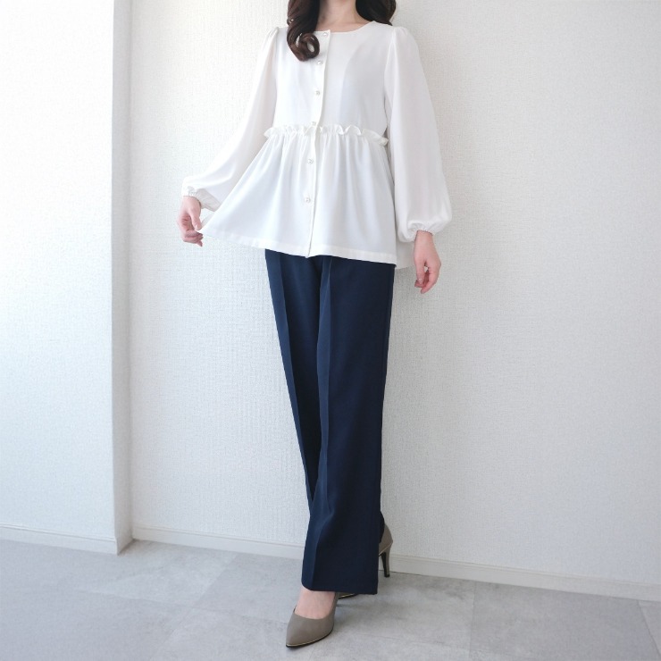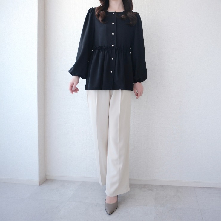 きれいめにもカジュアルにも着まわしやすいブラウスです。
