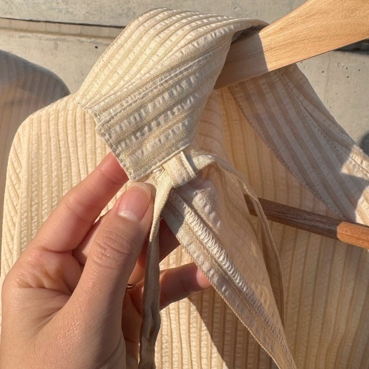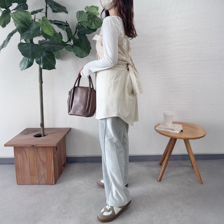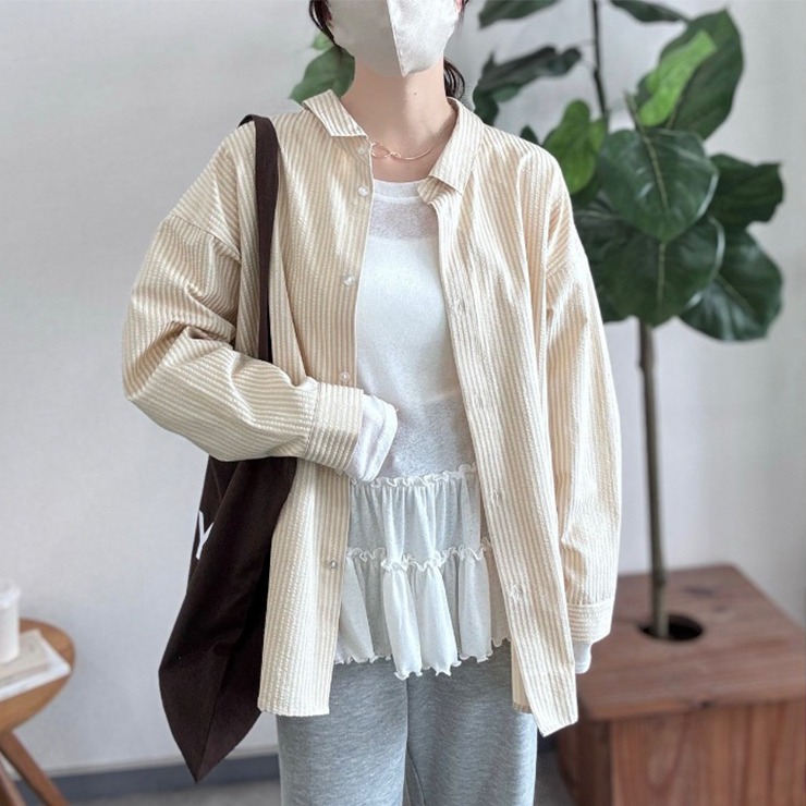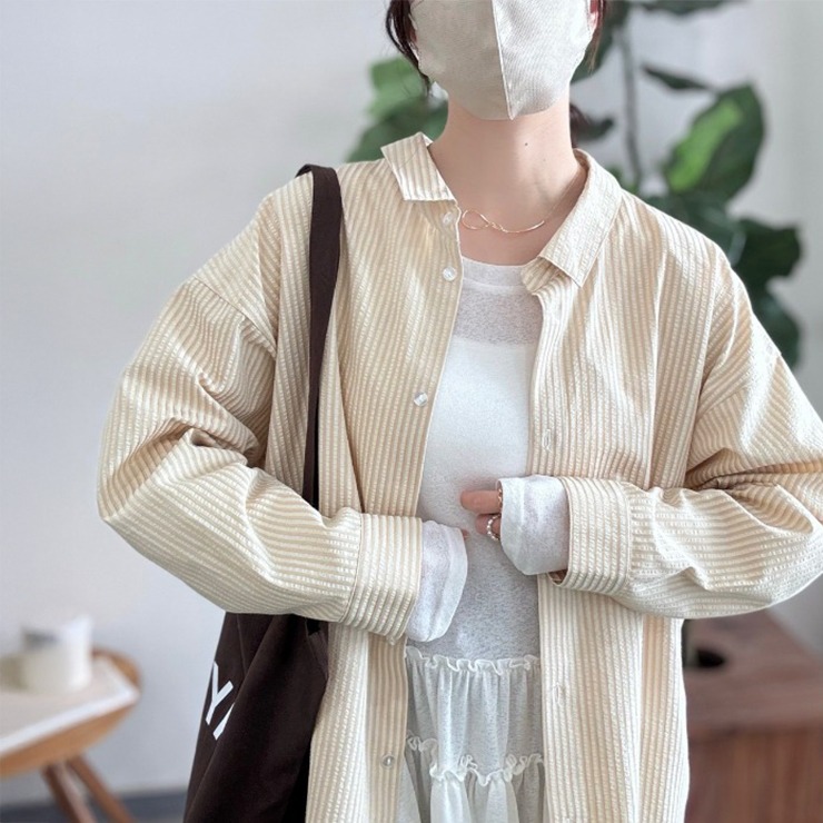 ストライプが上品な抜け感を加え、立体的なフォルムが普段のコーデをさりげなくアップデート。