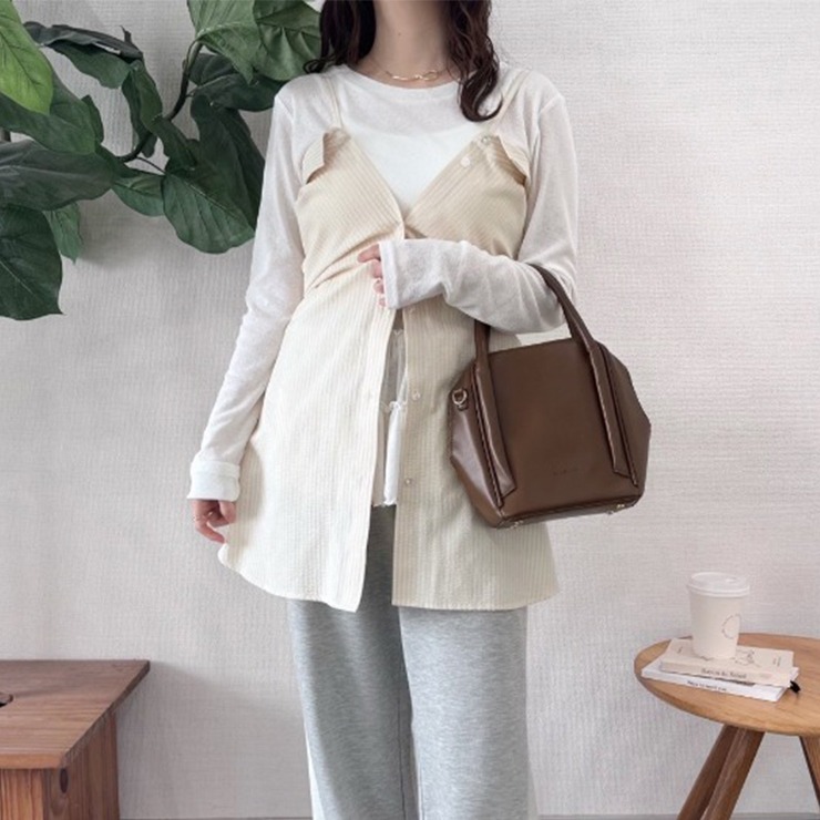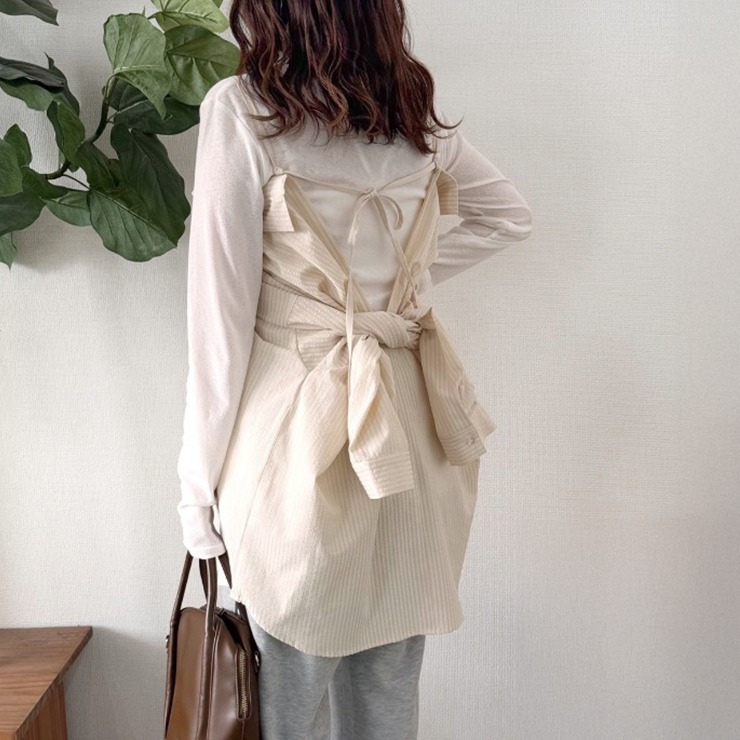 シャツとしてすっきり着るのはもちろん、ビスチェ風のシルエットにも変化できるデザインシャツ。