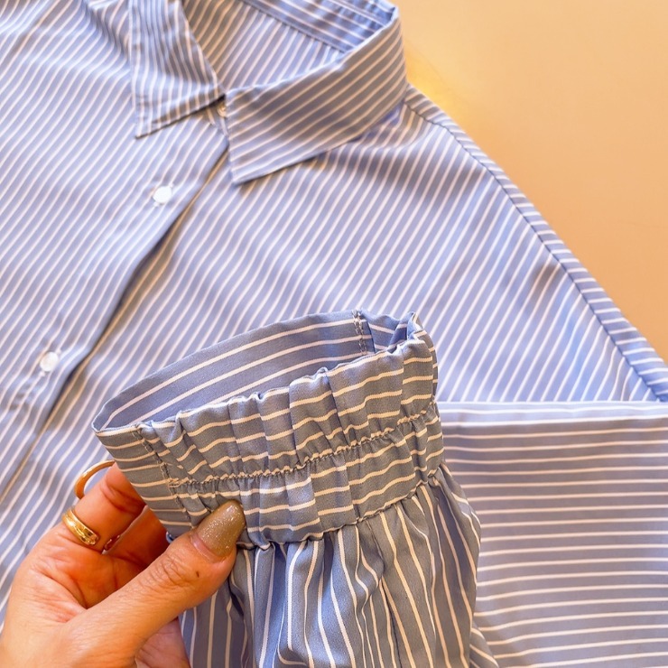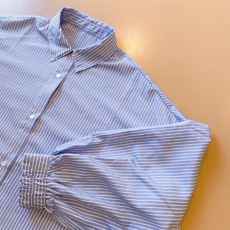 程よくゆとりのあるサイズ感と、袖口のデザインがさりげないアクセントのストライプシャツ。