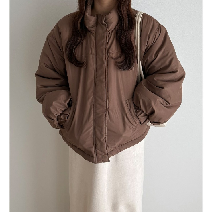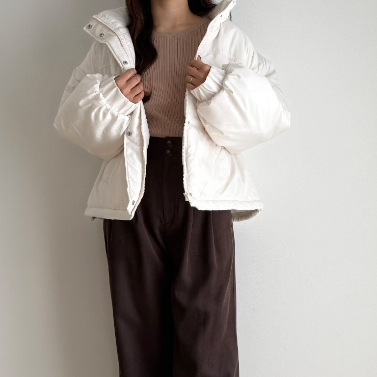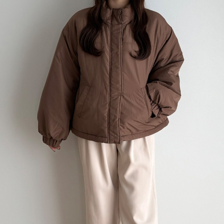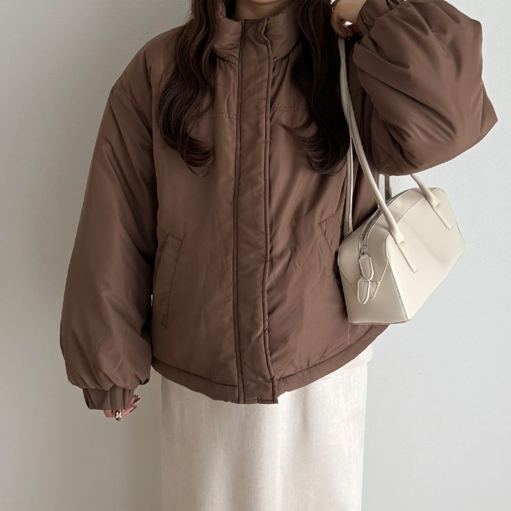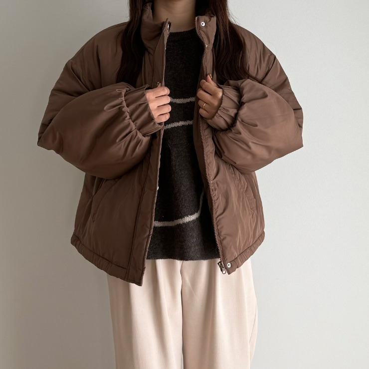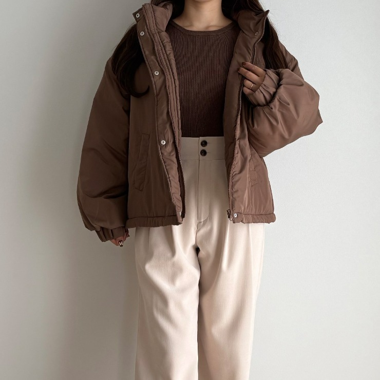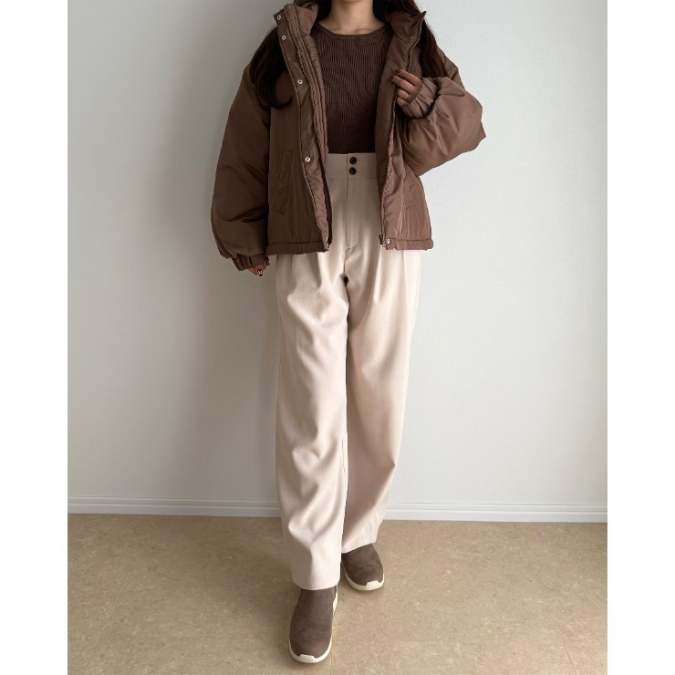 ボリューム感がありながらも裾部分のドローコードでスタイルアップも叶えることができる万能中綿アウターが登場!スタンド襟が首元まで暖かさをしっかりキープ◎