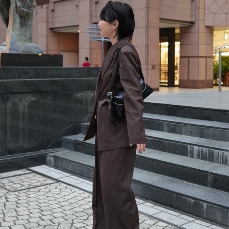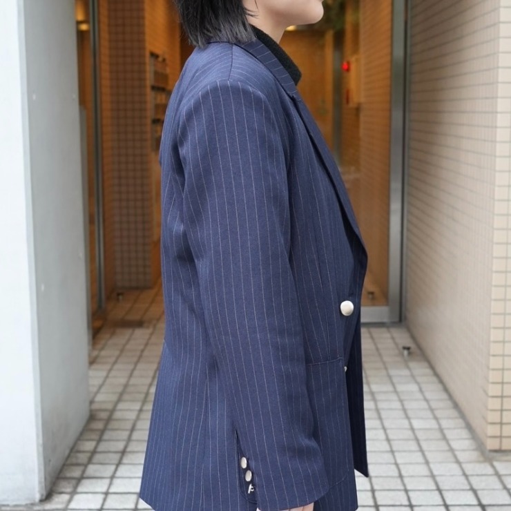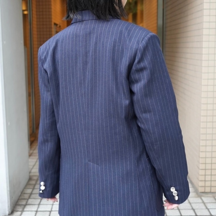 羽織るだけで一気にモードな雰囲気になるストライプジャケット。