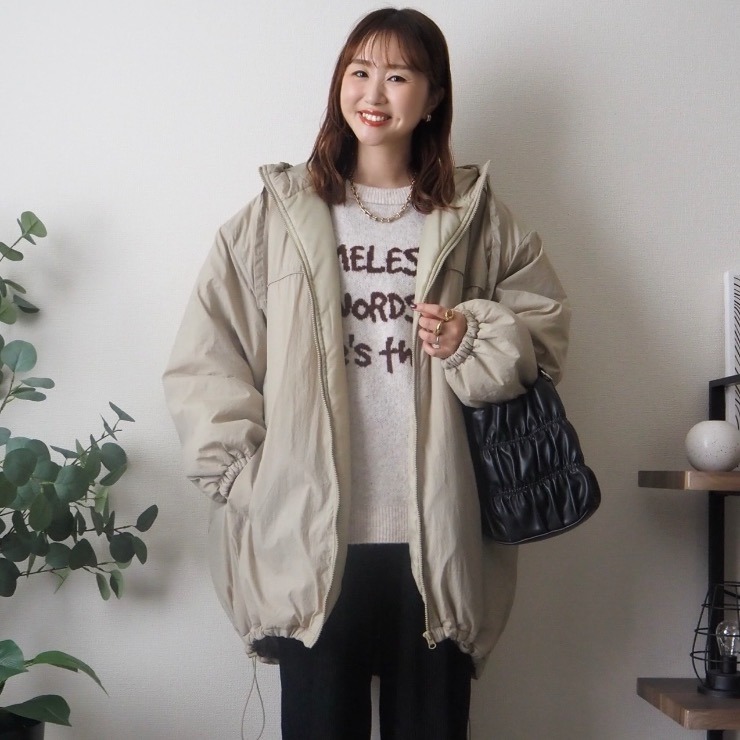 ミニボトムやワンピースに合わせて、ゆるっと可愛い冬コーデに。