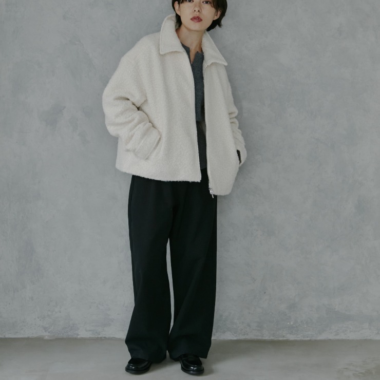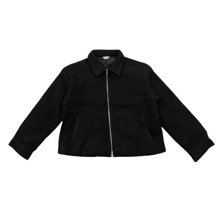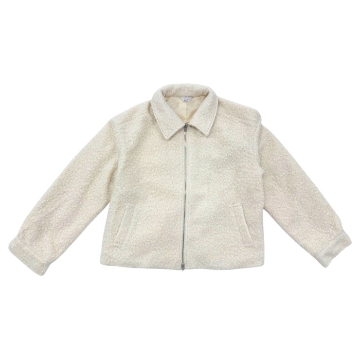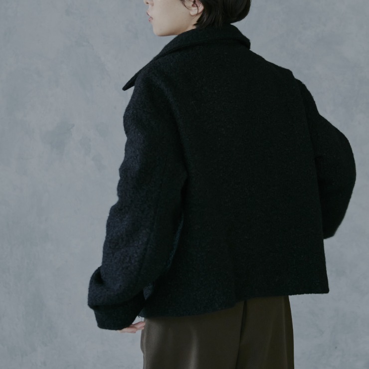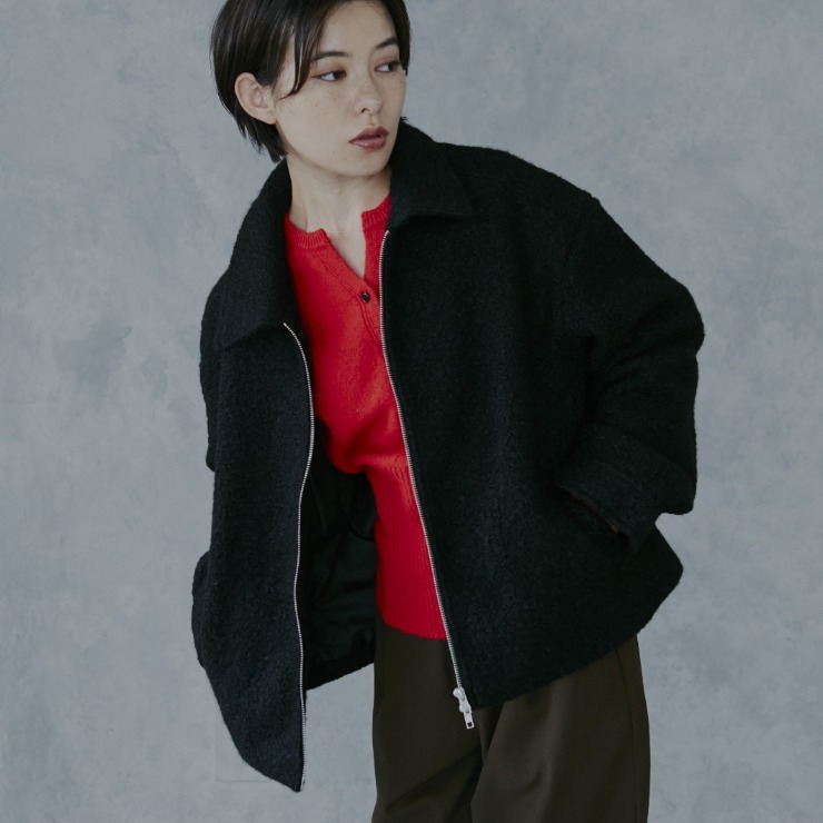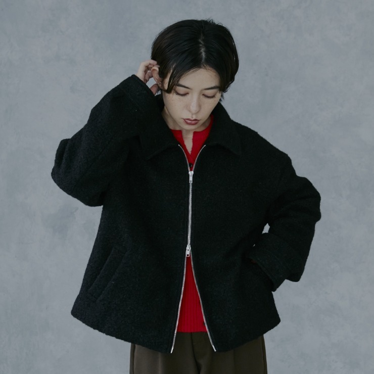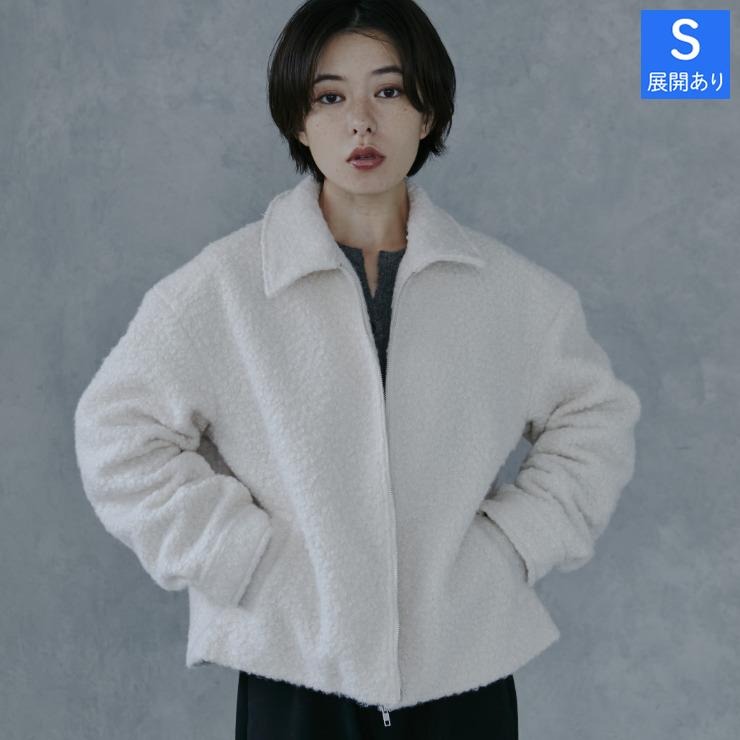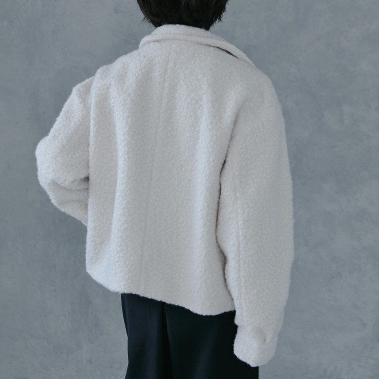 ふんわりした見た目がかわいいブークレ素材のジャケット。程よい丈感で合わせやすさも抜群です。