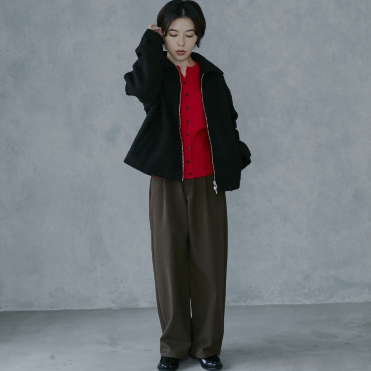 下だけジップを開けて着用することでトレンド感がアップします!