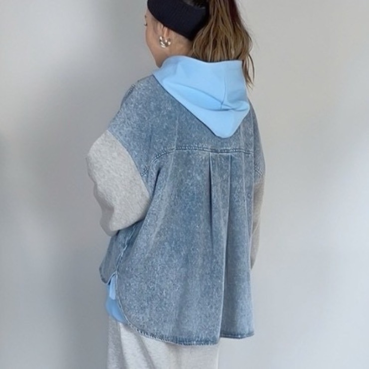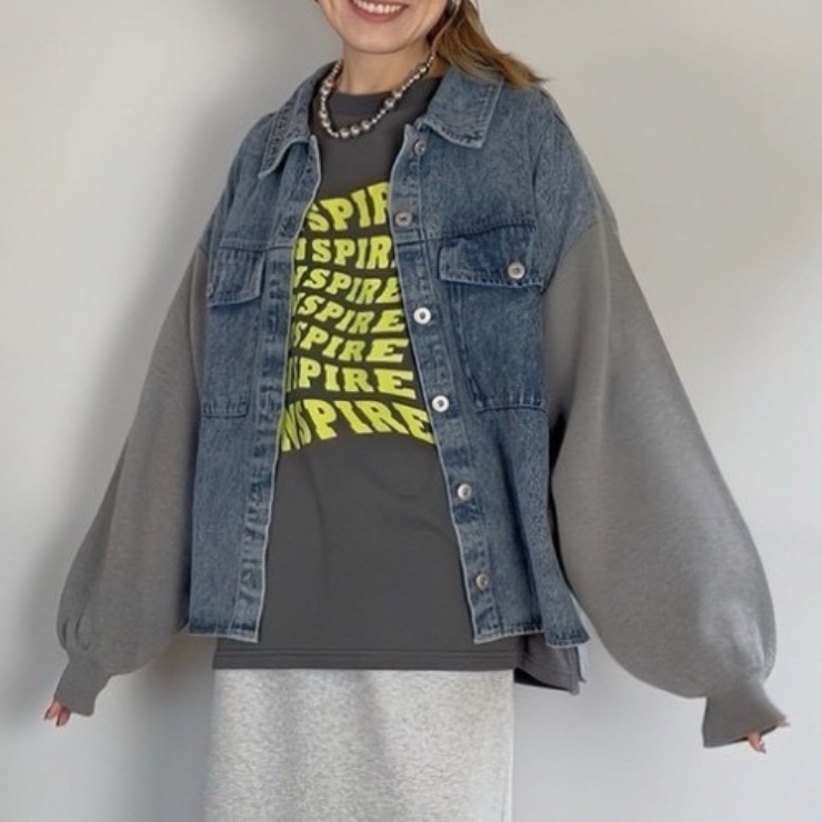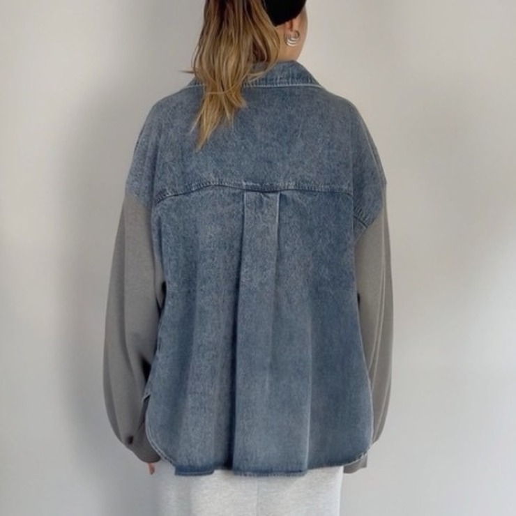 カジュアルなデニムボディに柔らかいニット袖を組み合わせたアイテム。