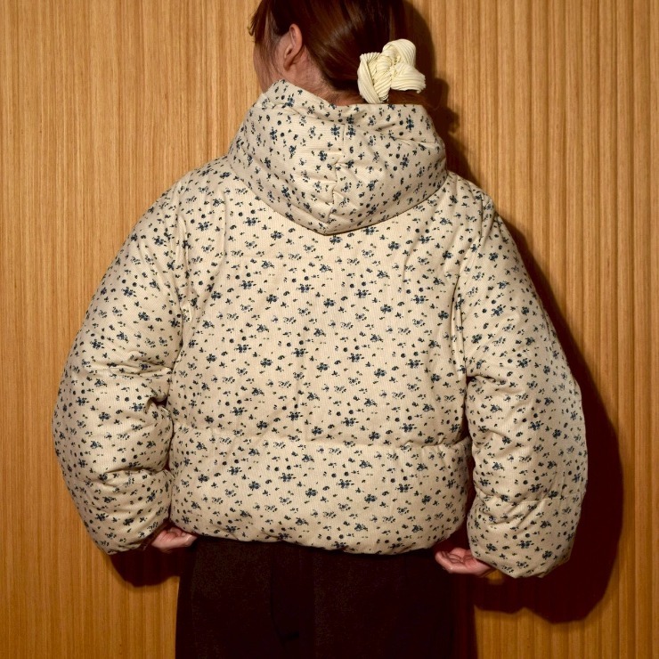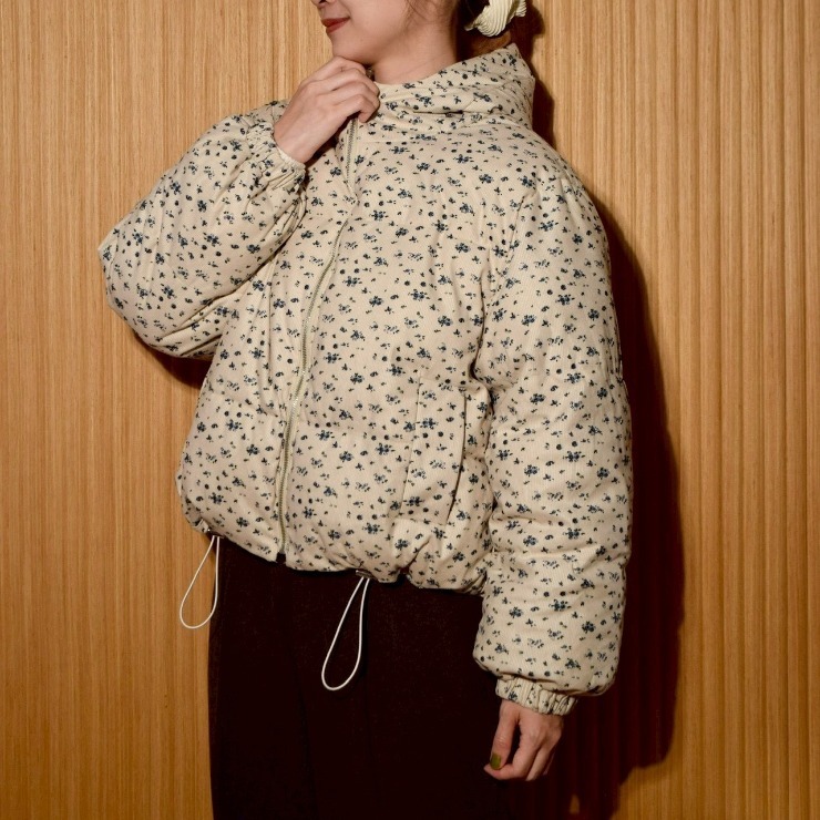 レディース 小花柄コールテン中綿フーディーブルゾン(ちょこび)