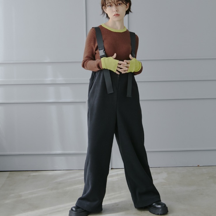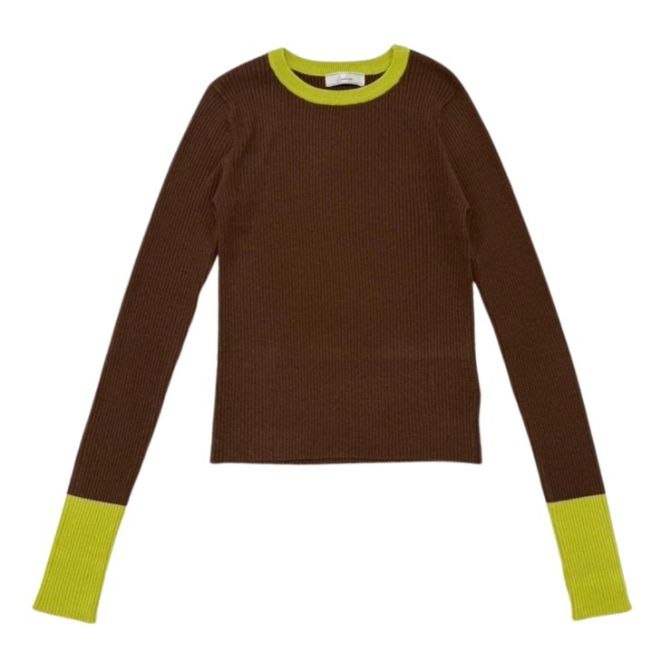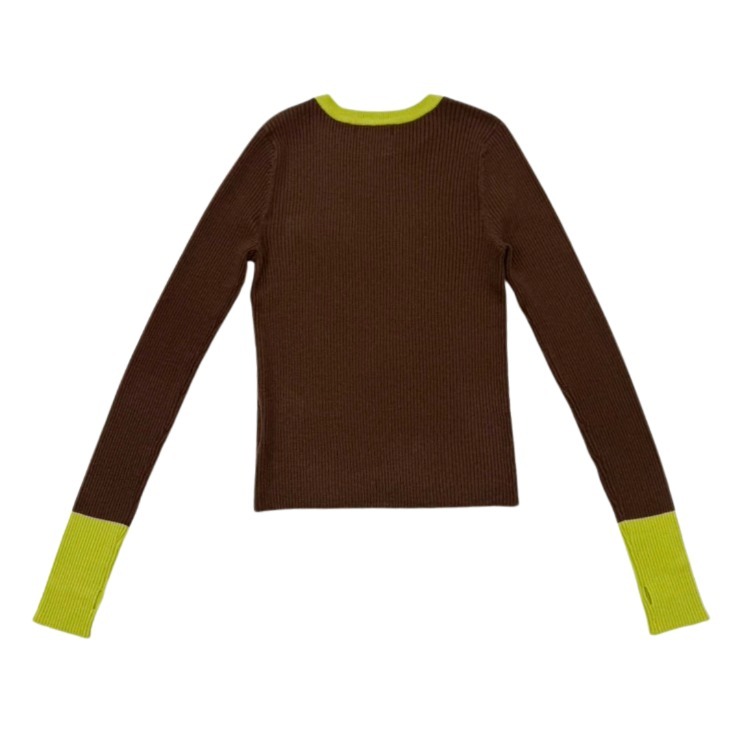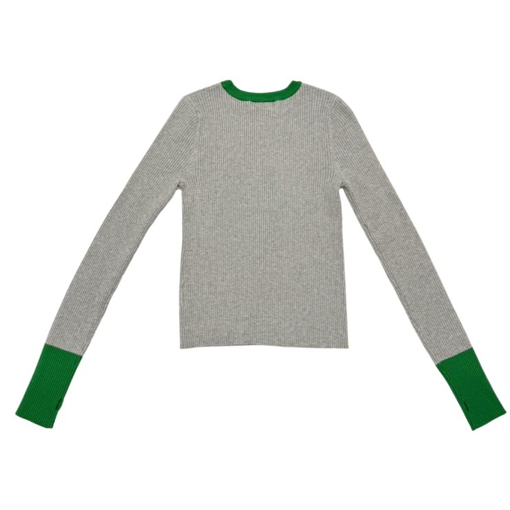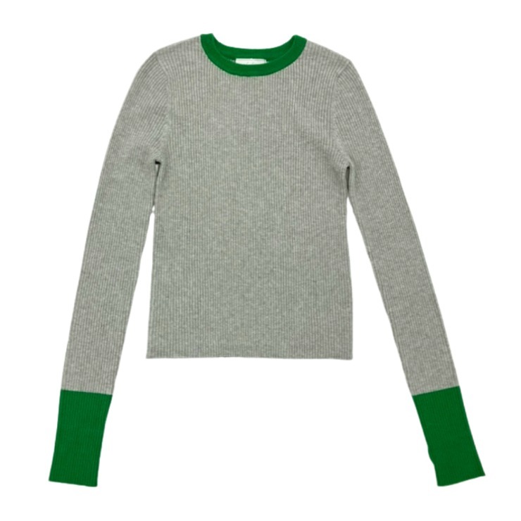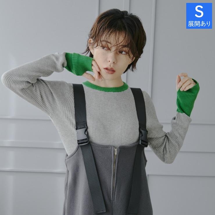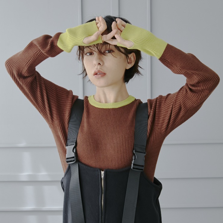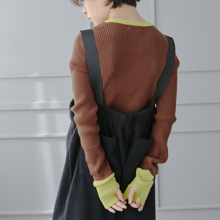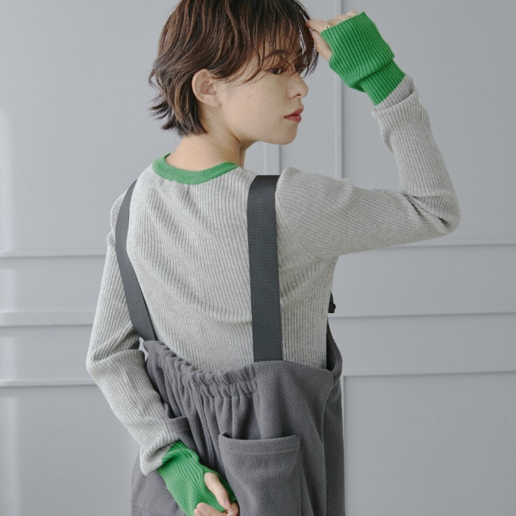 今年らしい配色がポイントの指穴付きリブニットプルオーバー。