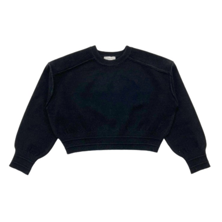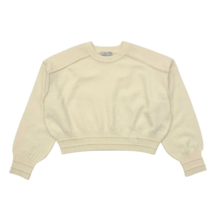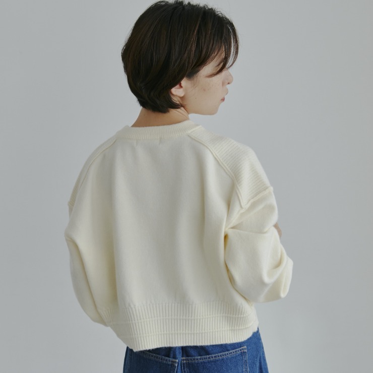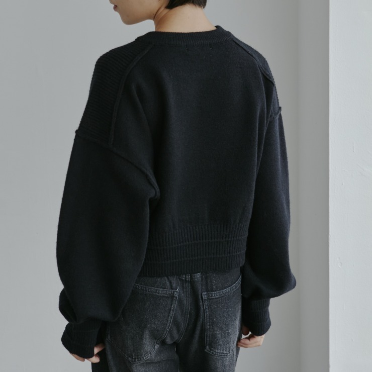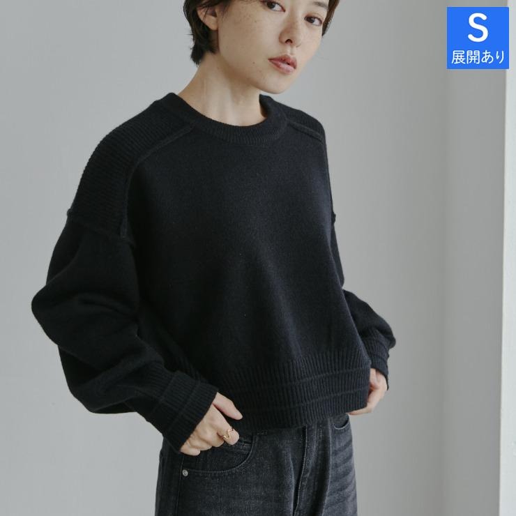 編地の切り替えとリブ部分のタック編みがポイントのニットプルオーバー。