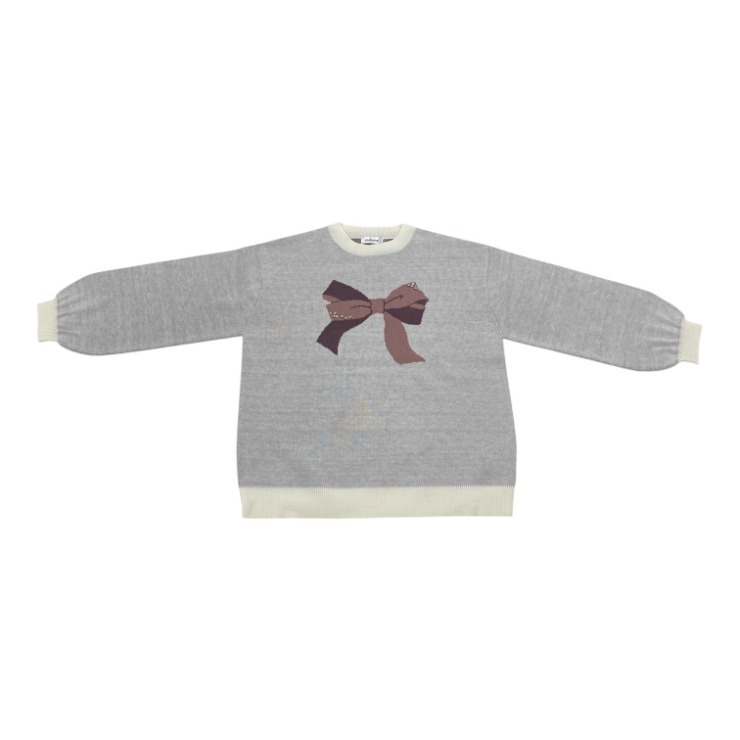 レディース リボンジャガードニットプルオーバー(maki) グレー 212 グレー 212