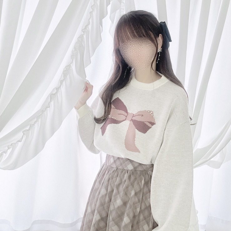 レディース リボンジャガードニットプルオーバー(maki)