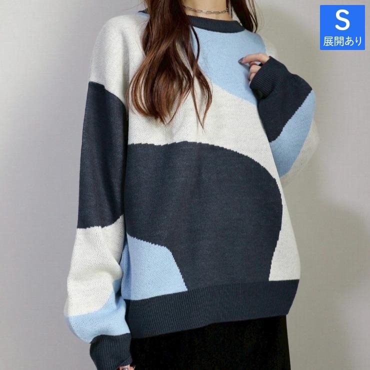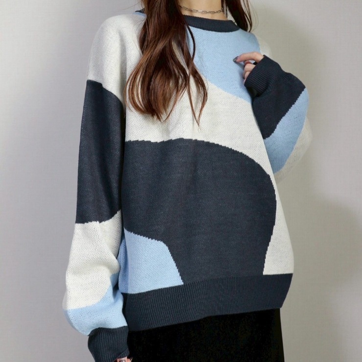 レディース マーブル柄ニットプルオーバー(pen) ネイビー 208 ネイビー 208