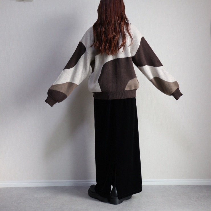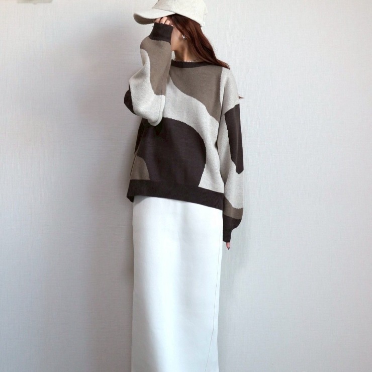 レディース マーブル柄ニットプルオーバー(pen) ダークブラウン 115 ダークブラウン 115