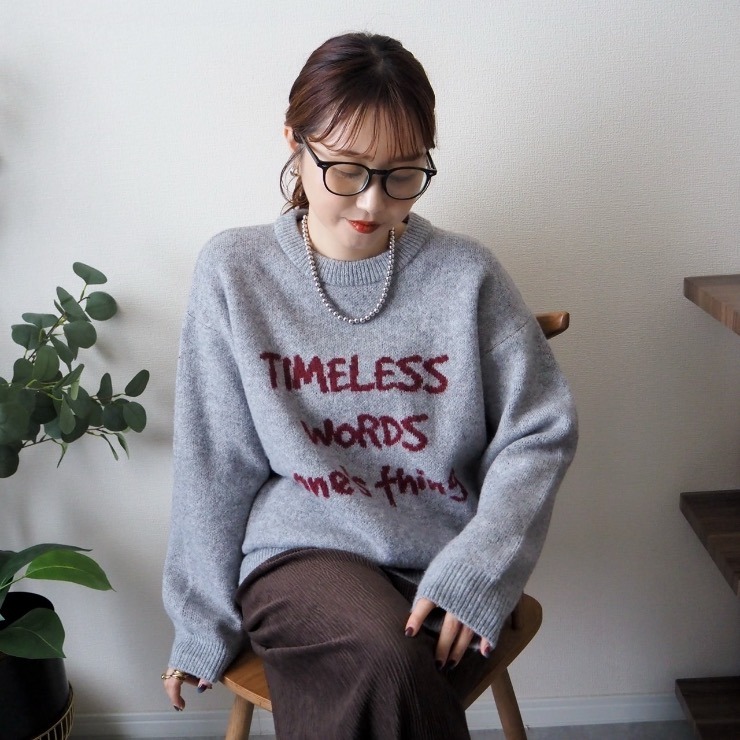 もっちりとした素材感の英字ロゴ入りジャガードニット