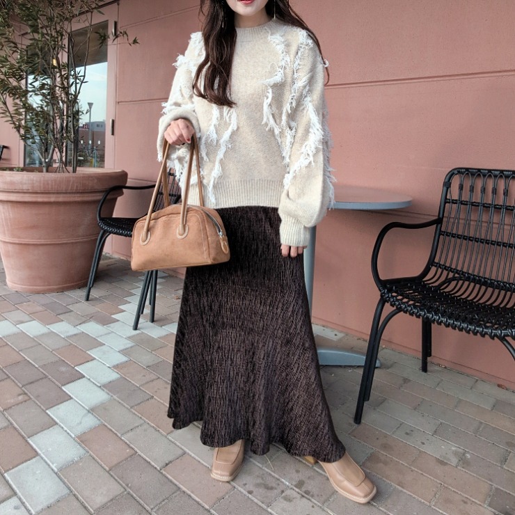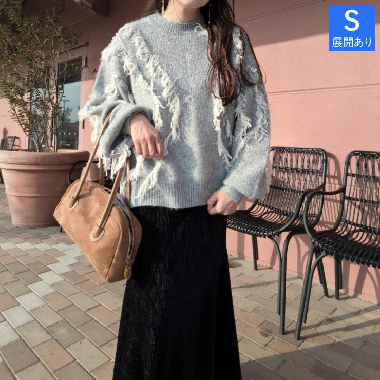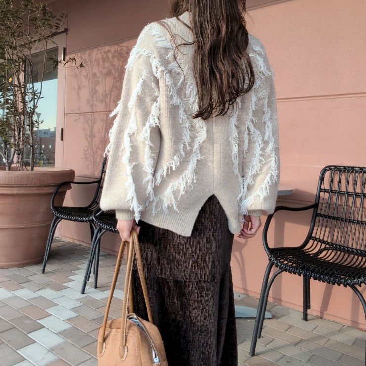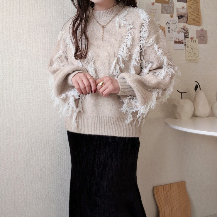 ランダムフリンジがアクセントの遊び心あるニット♪