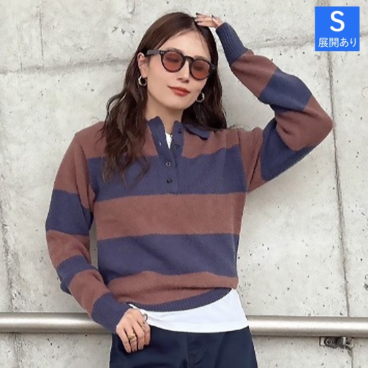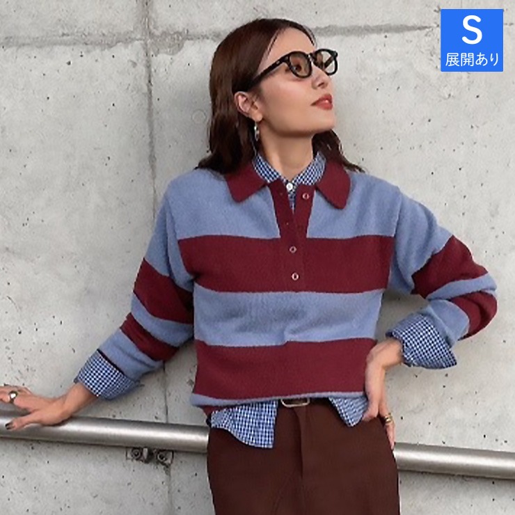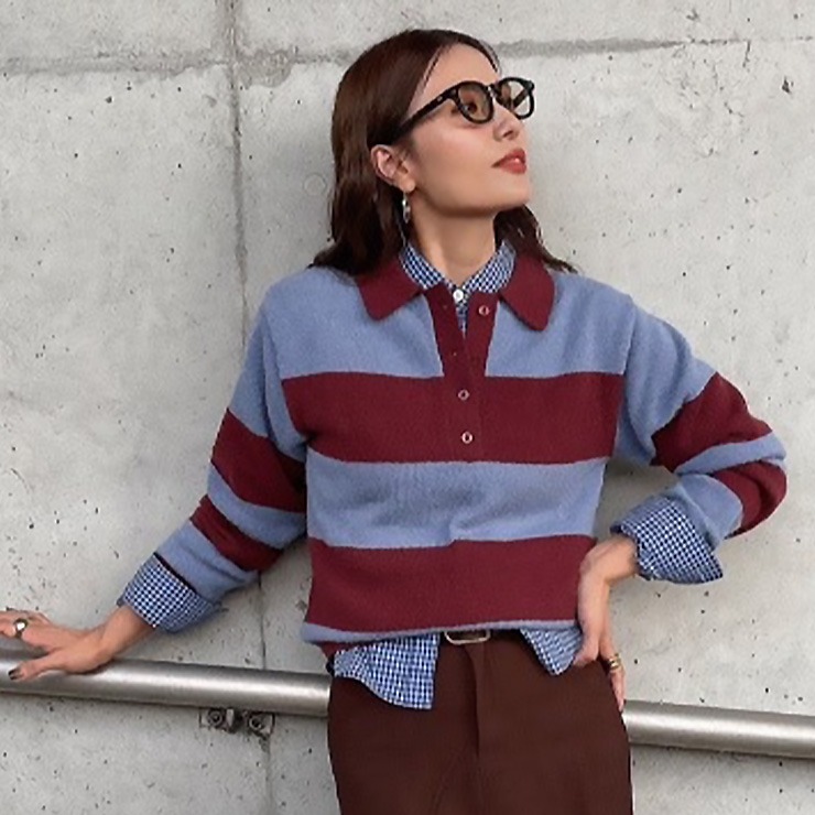 レディース 襟付きボーダーニットプルオーバー(kaoru)
