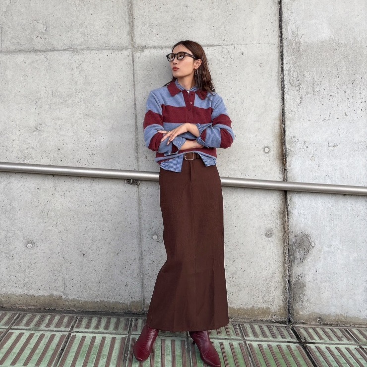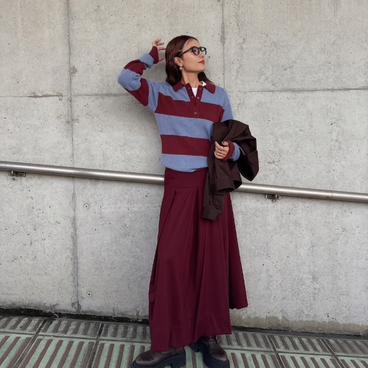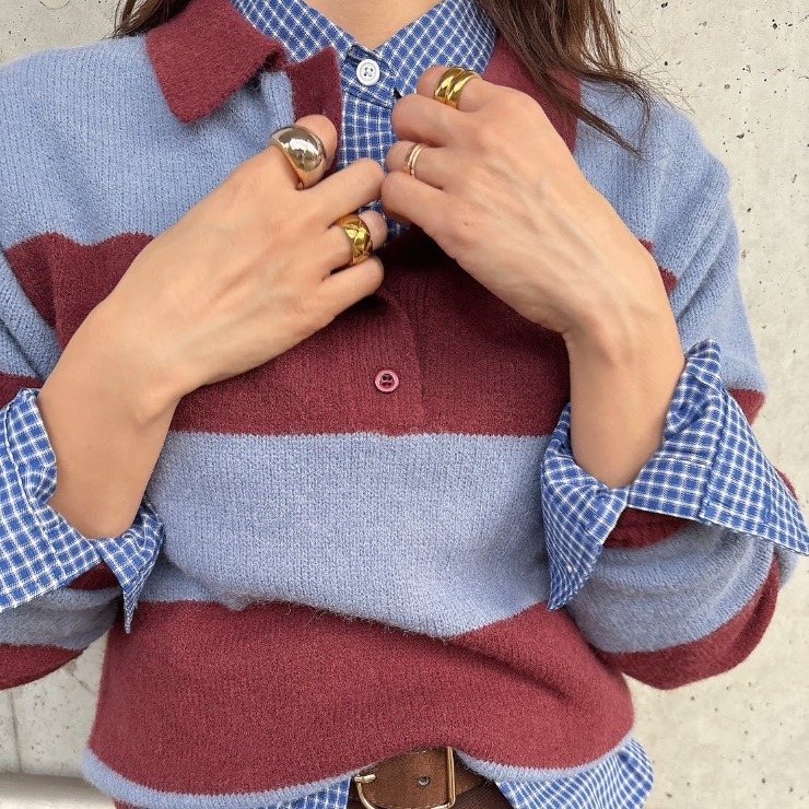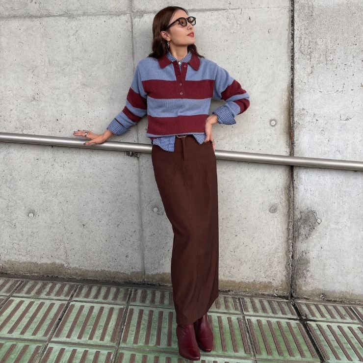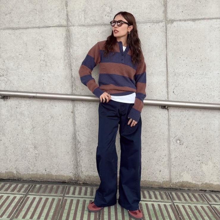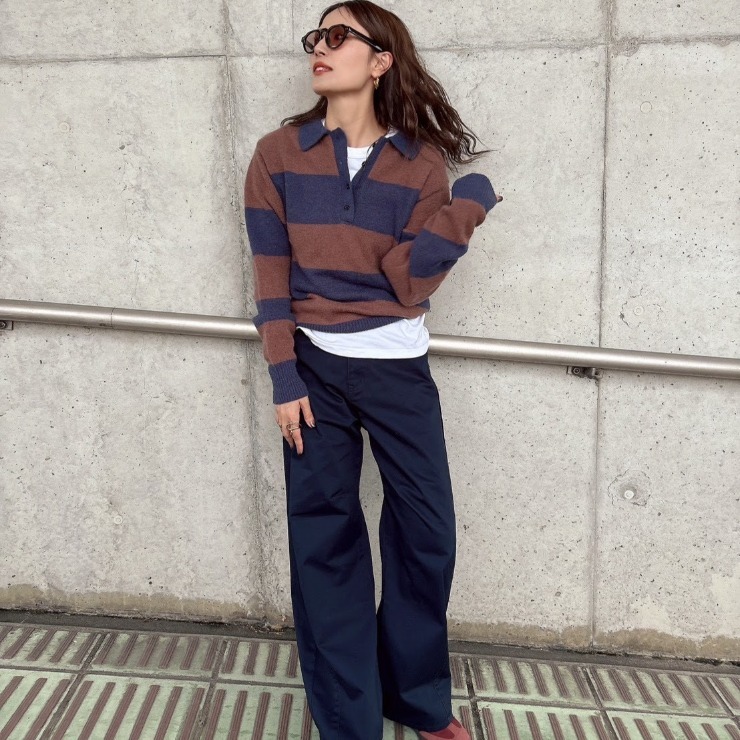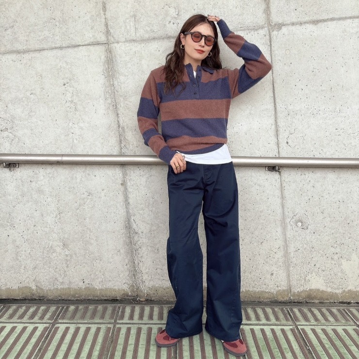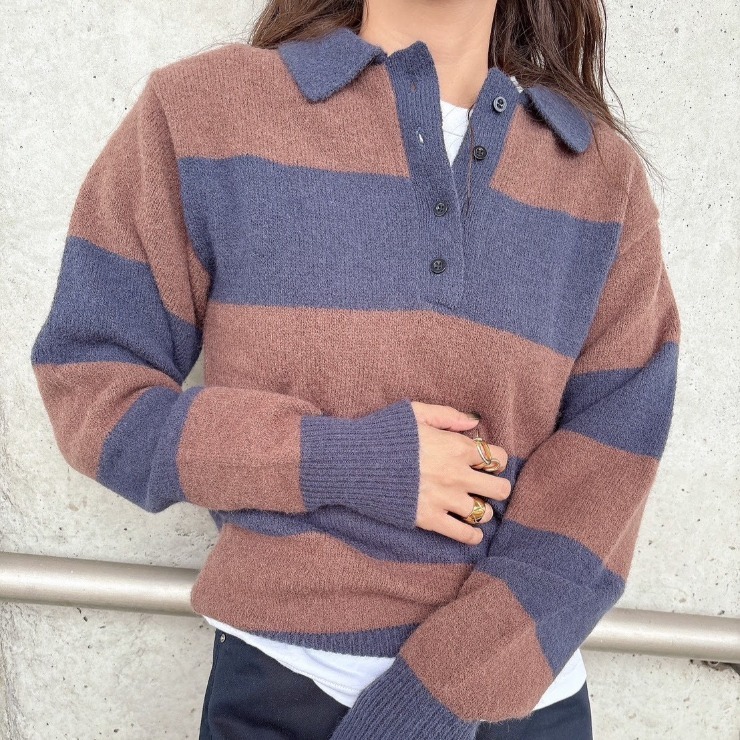 かおるさんコラボのニット。ボーダーがトレンド感ありで可愛い
