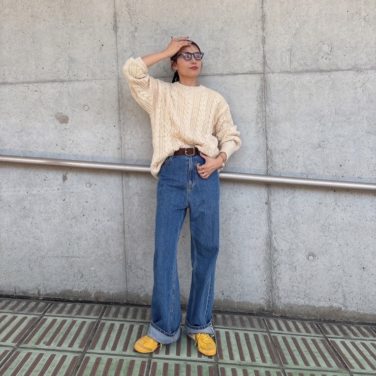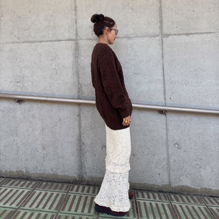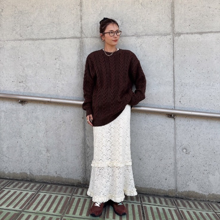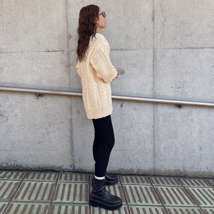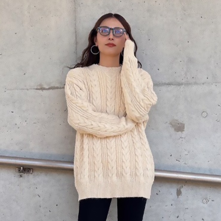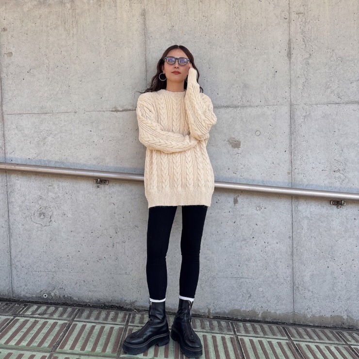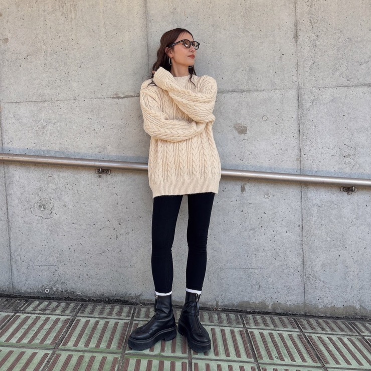かおるさんコラボのニット。大きめなケーブルが可愛い