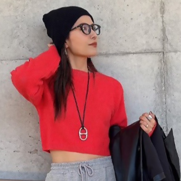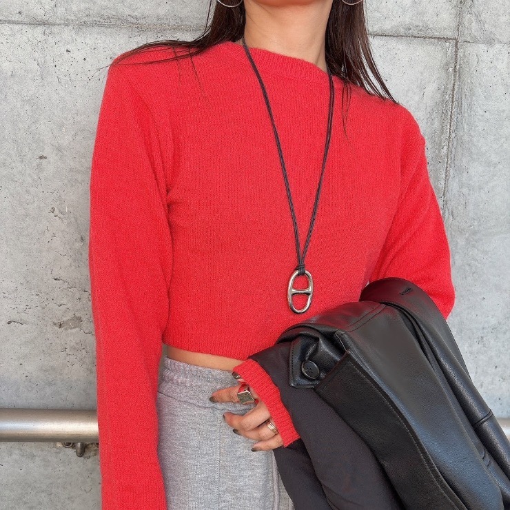 かおるさんコラボのニット。ショート丈が今時感で可愛い