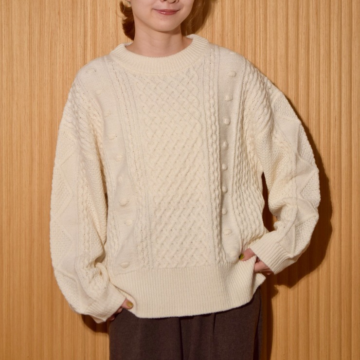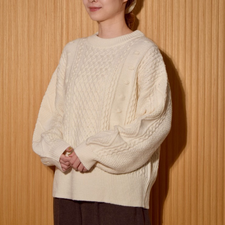 レディース ケーブル編みポコポコニットプルオーバー(ちょこび)