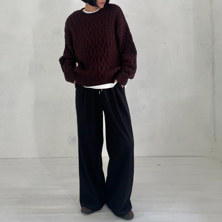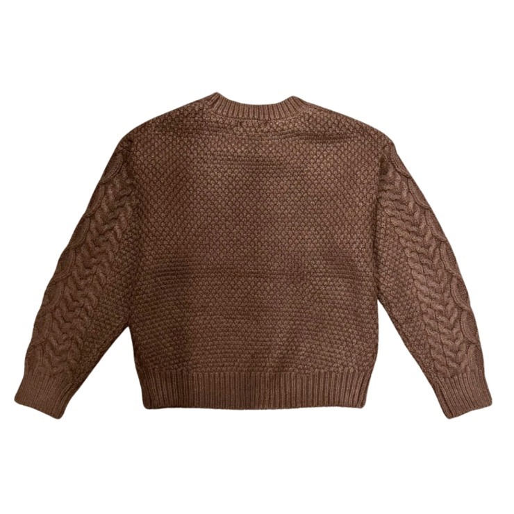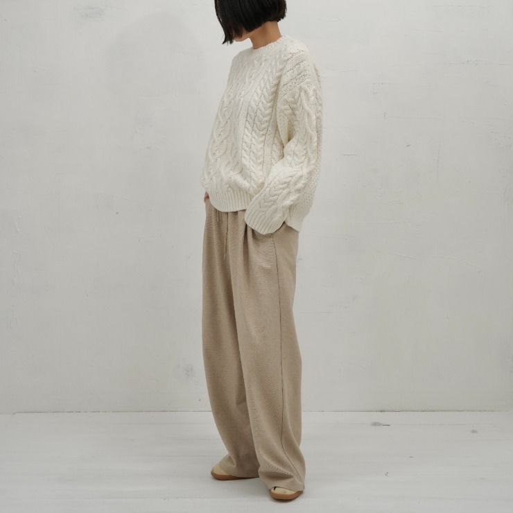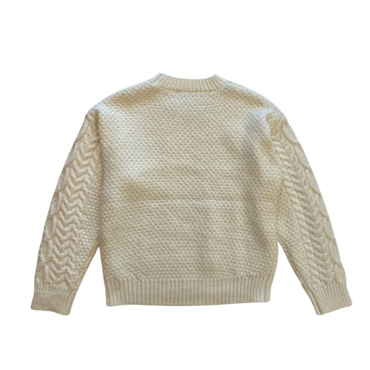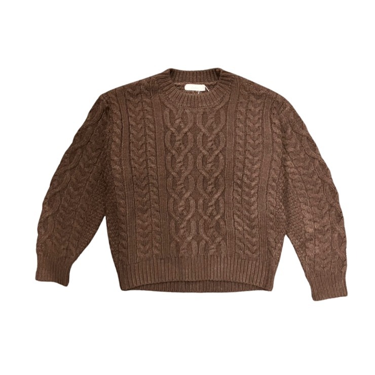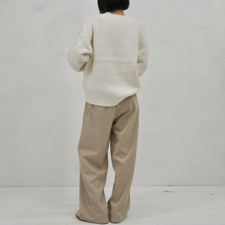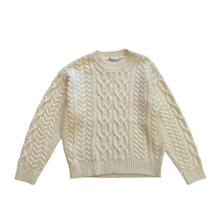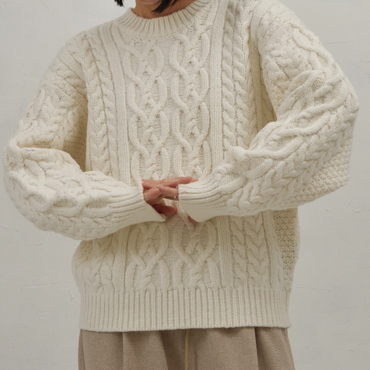 立体的なアラン柄の編地がおしゃれなニットプルオーバー。