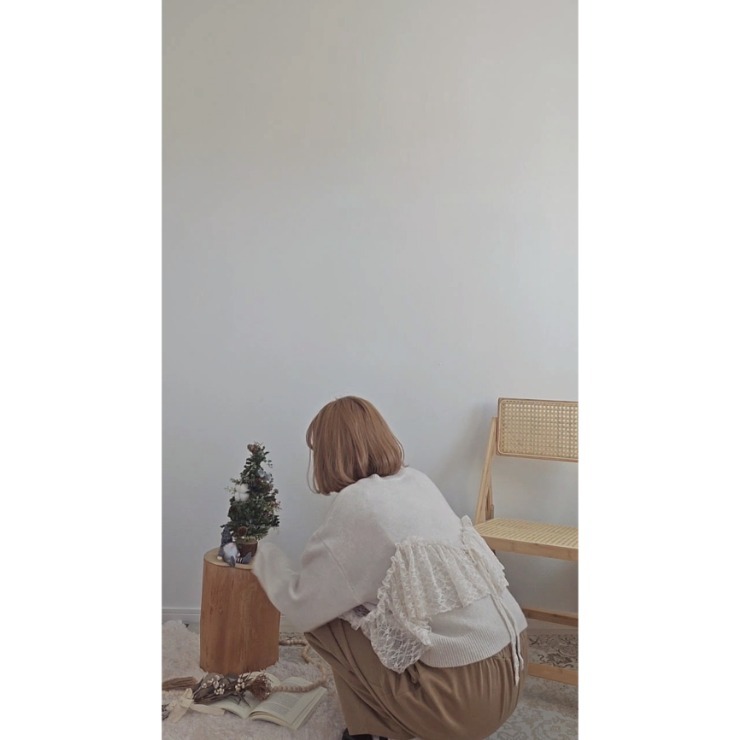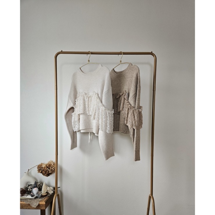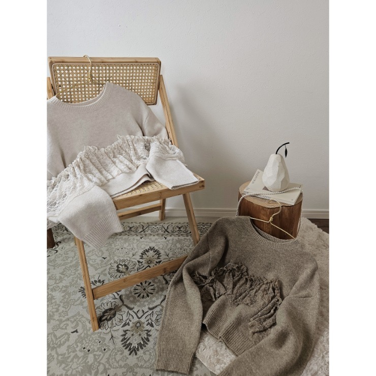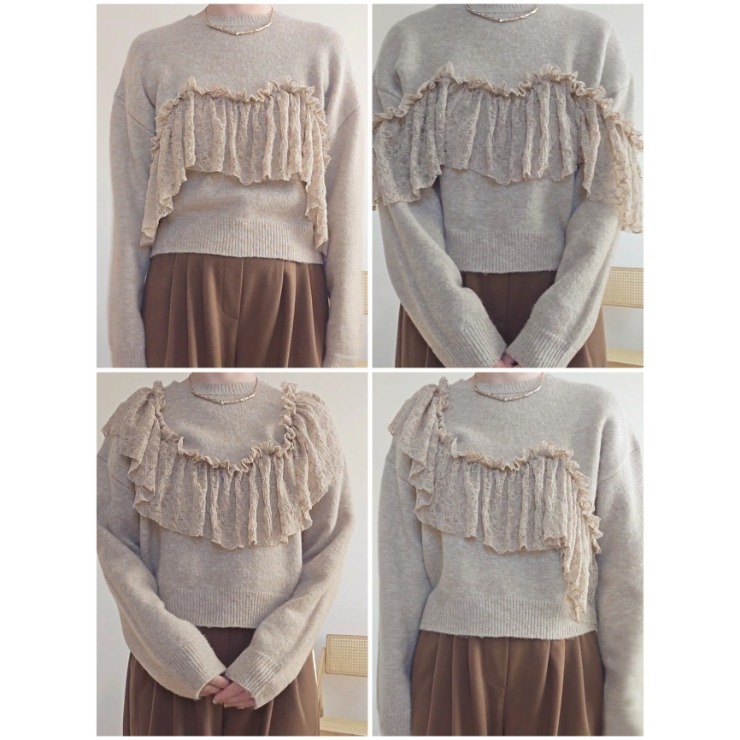 レースビスチェを重ねたようなデザインが可愛いフェミニンニット。