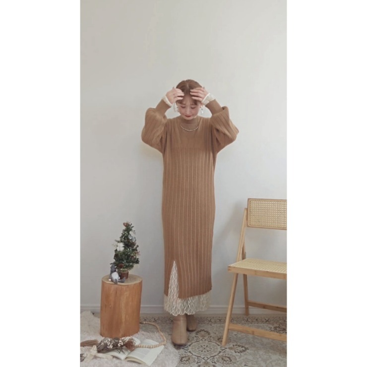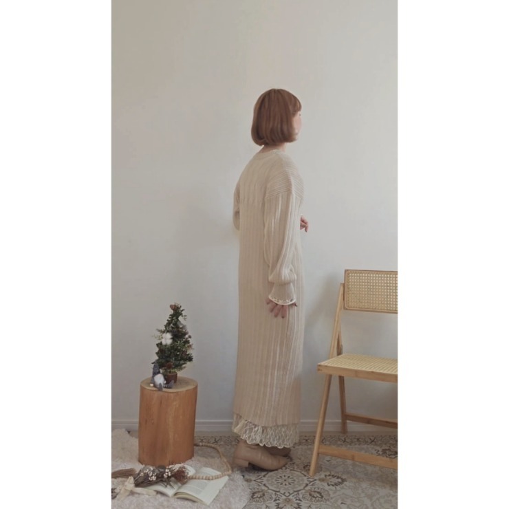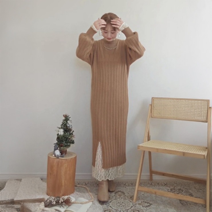 さりげない編地の切り替えが上品な、すっきりシルエットのニットワンピ。