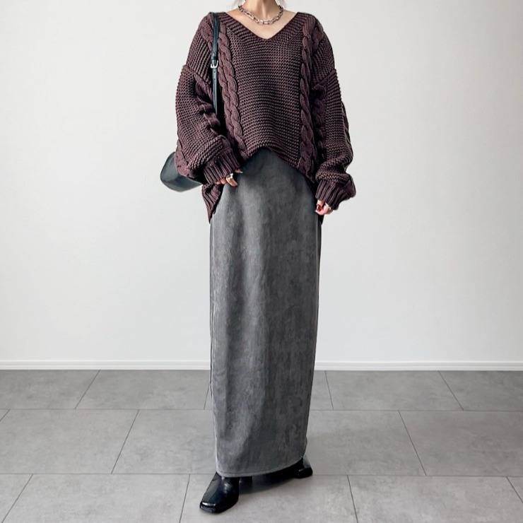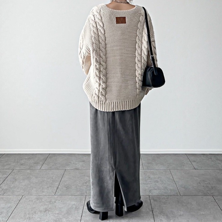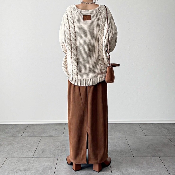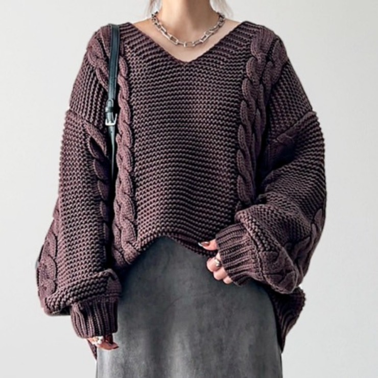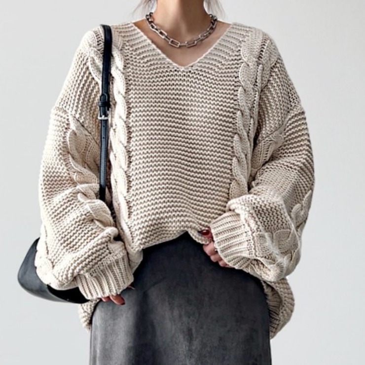 ざっくりとした編み地が可愛い、あたたかみのあるハンドニット。