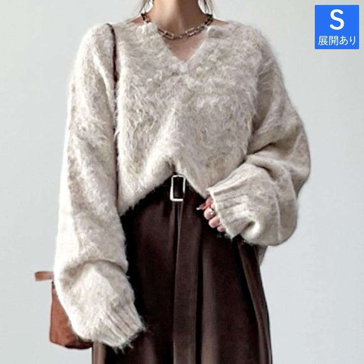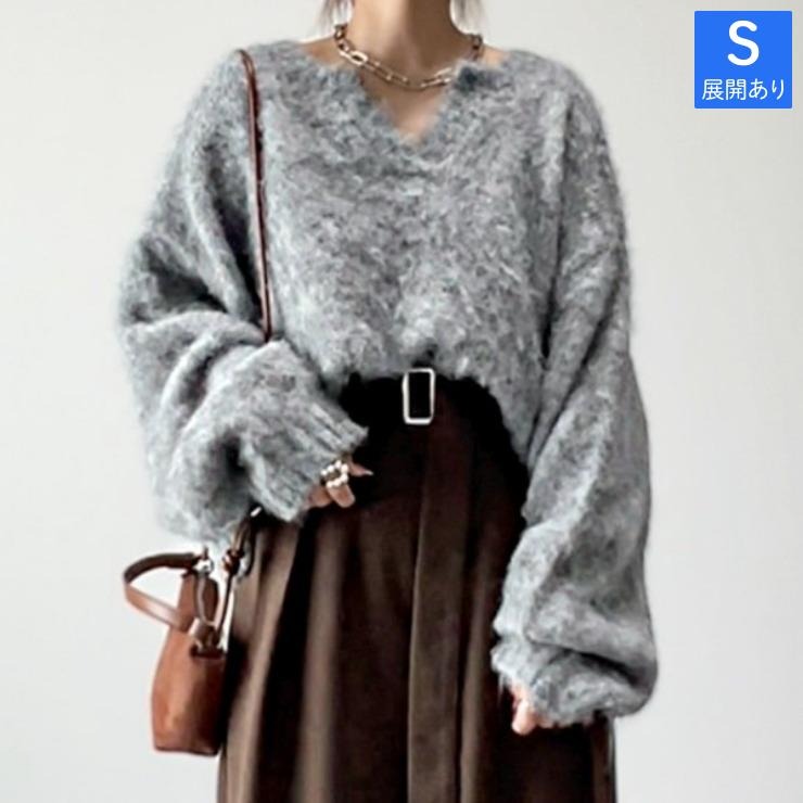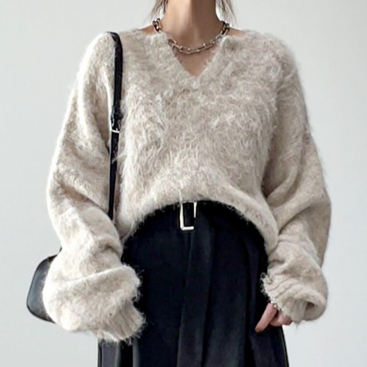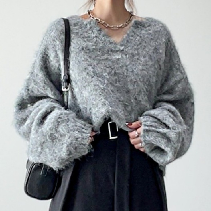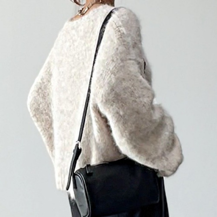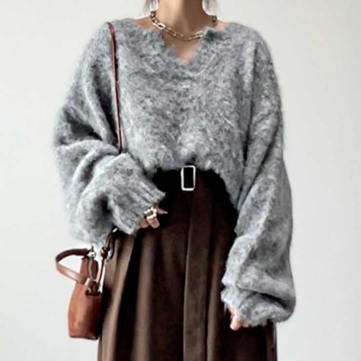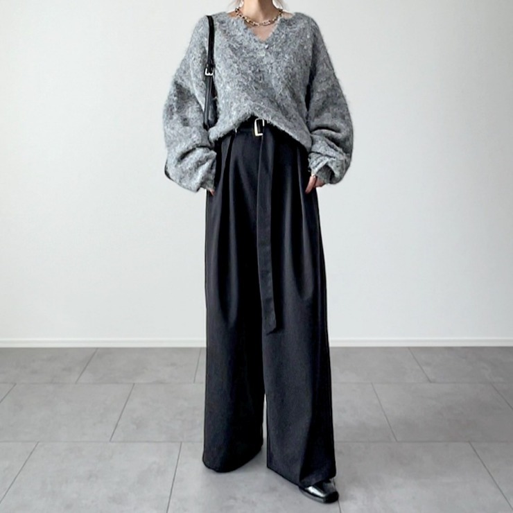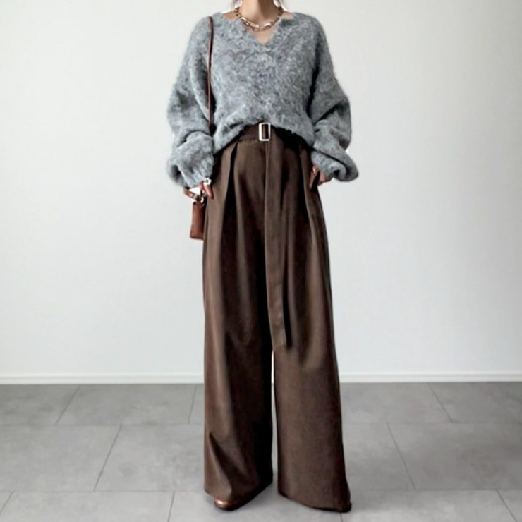 深めのキーネックが大人っぽい抜け感をつくるニットプルオーバー。