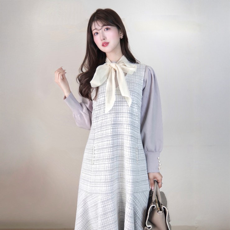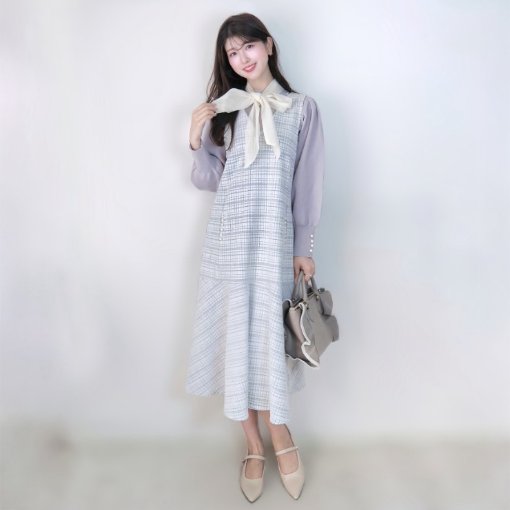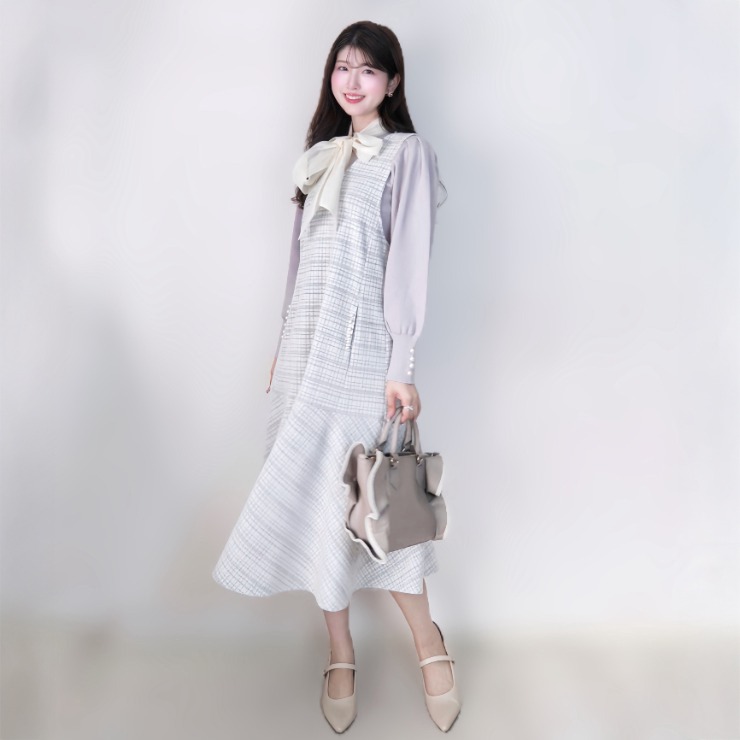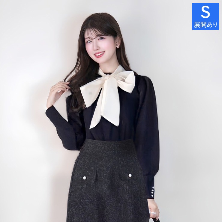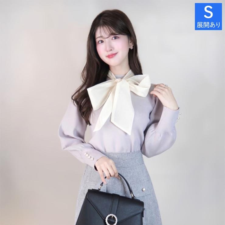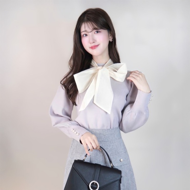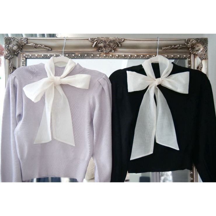 大きめのボウタイが華やかな印象のニットトップス◎