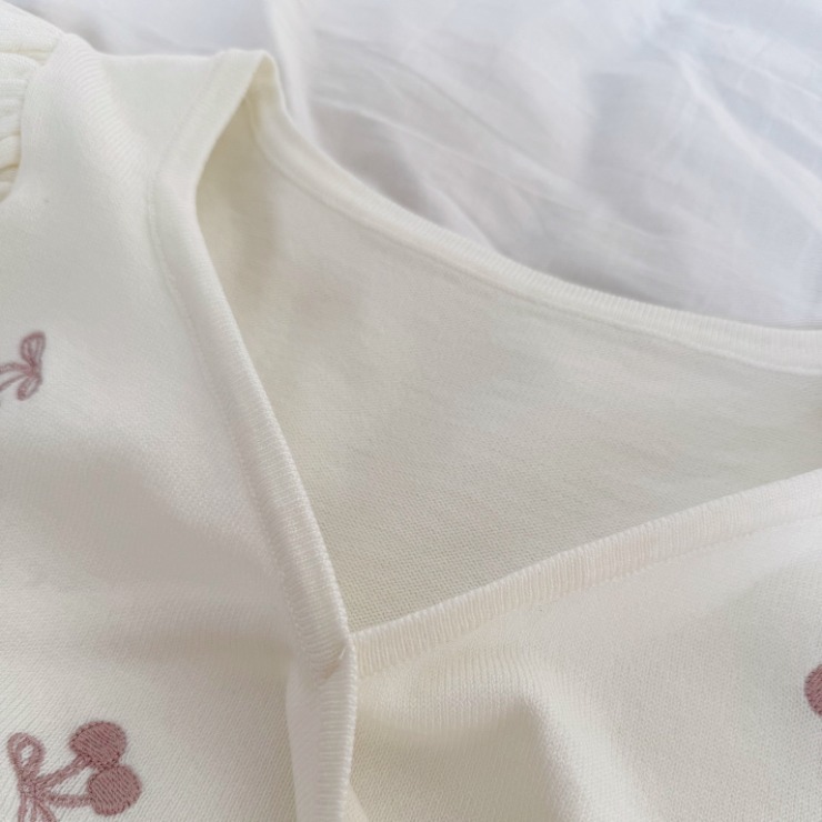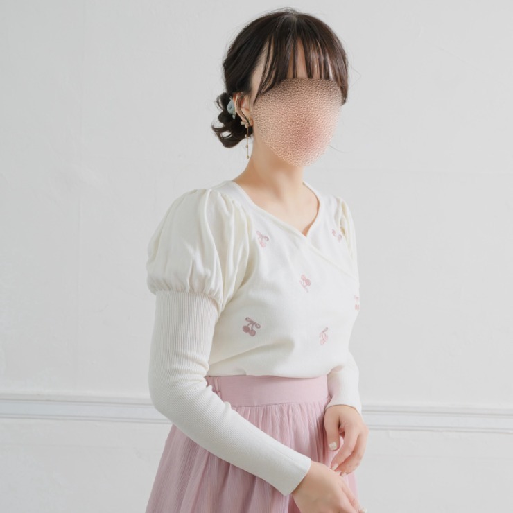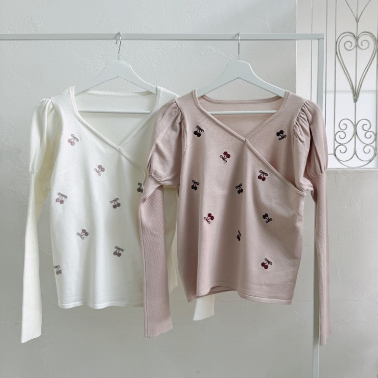 サクランボ柄の刺繍がかわいらしいプルオーバーニットです。
