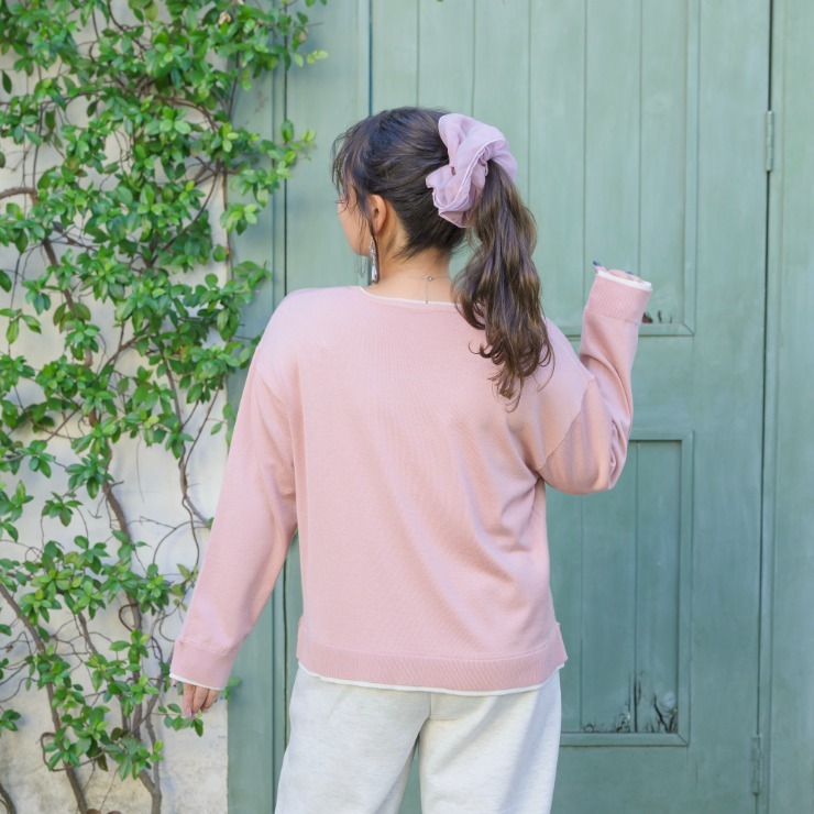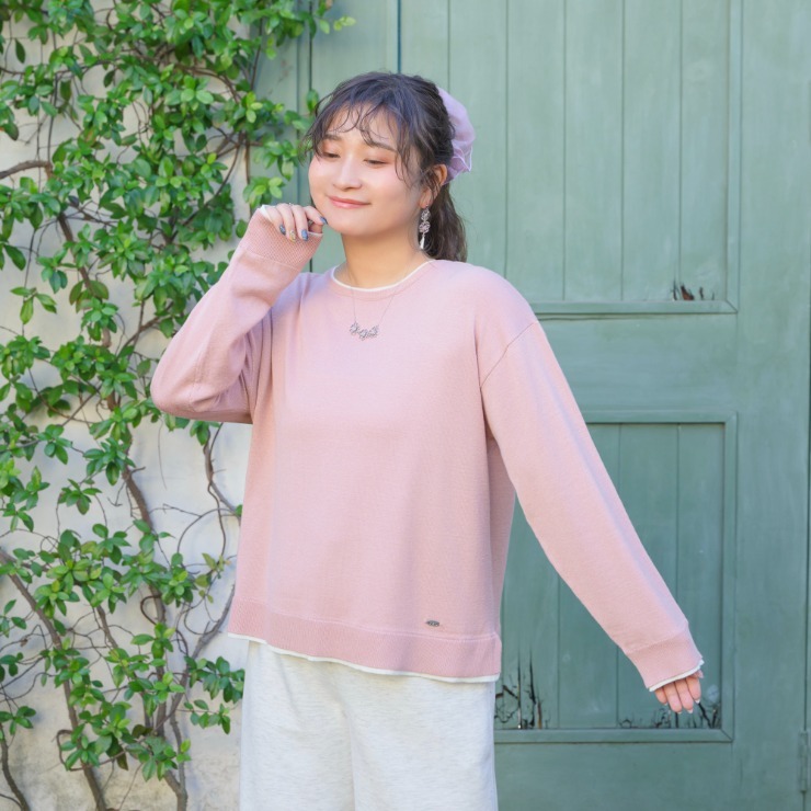 レディース レイヤード風配色ニットプルオーバー(Taiyou)
