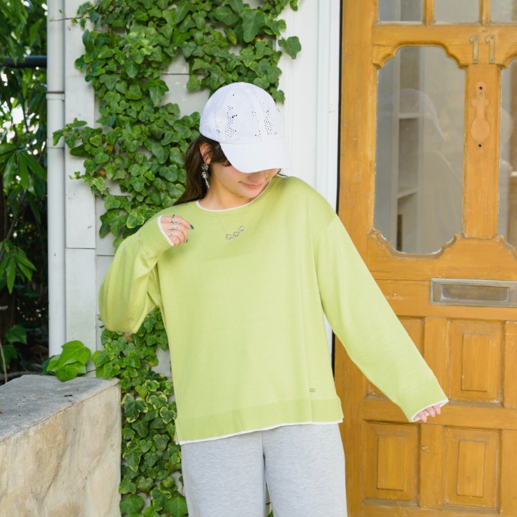"1枚でおしゃれが完成!レイヤード風ニット"