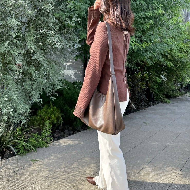 リボン&ボタンデザインを前にすれば華やかに、シンプルな面を前にすればすっきり大人顔に。