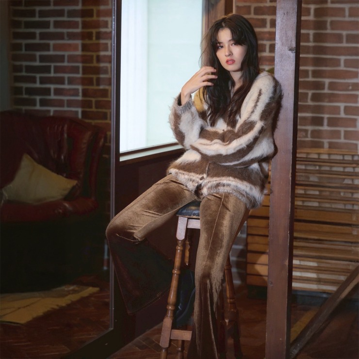 大胆な柄デザインと毛足のあるふんわり素材で、1枚で主役級の存在感。