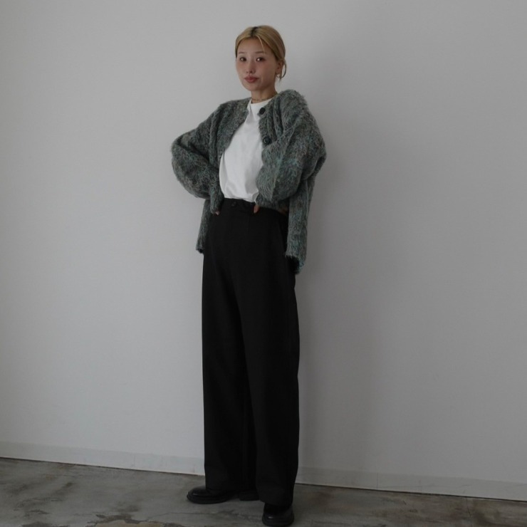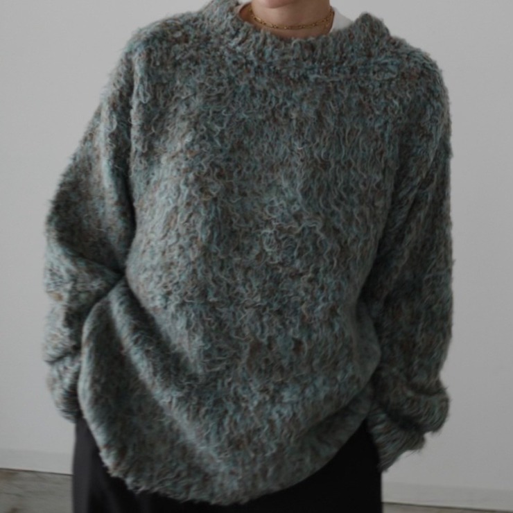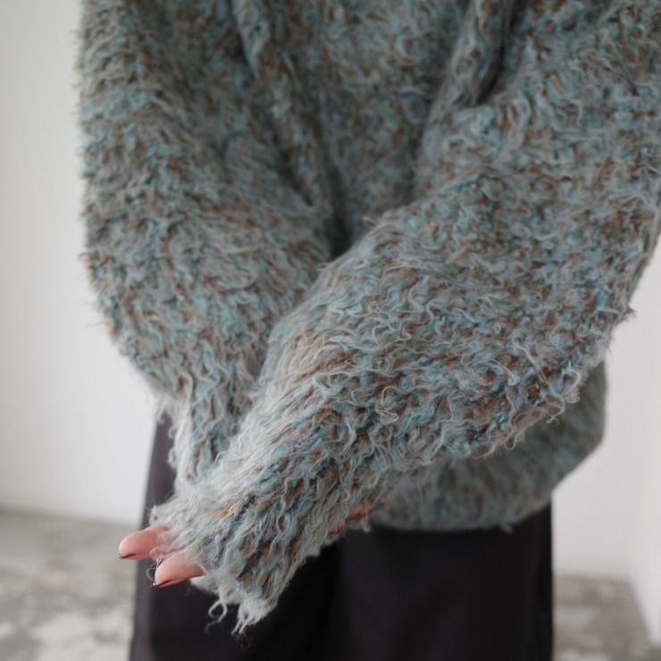 起毛加工を施した長めの毛足が特徴のMIXループのニットカーディガン。