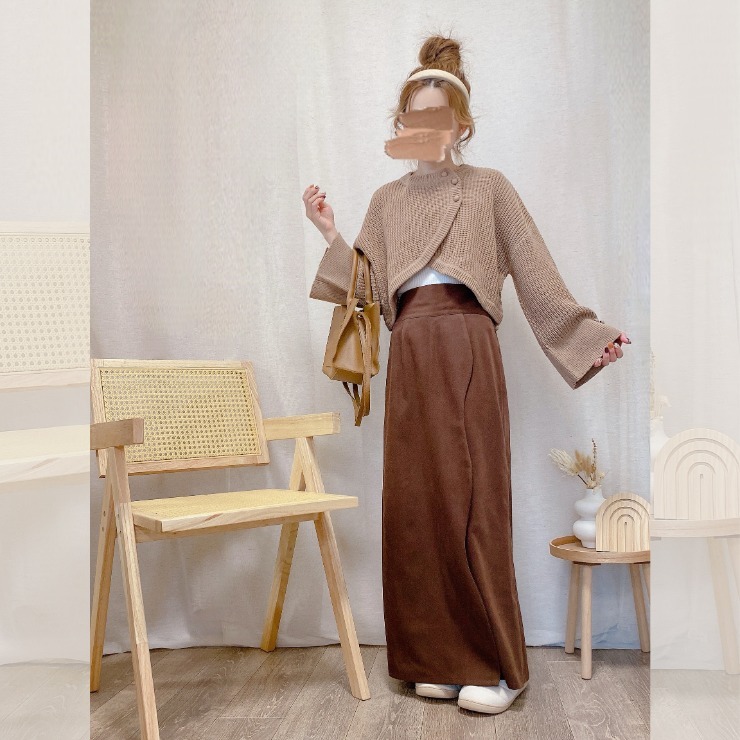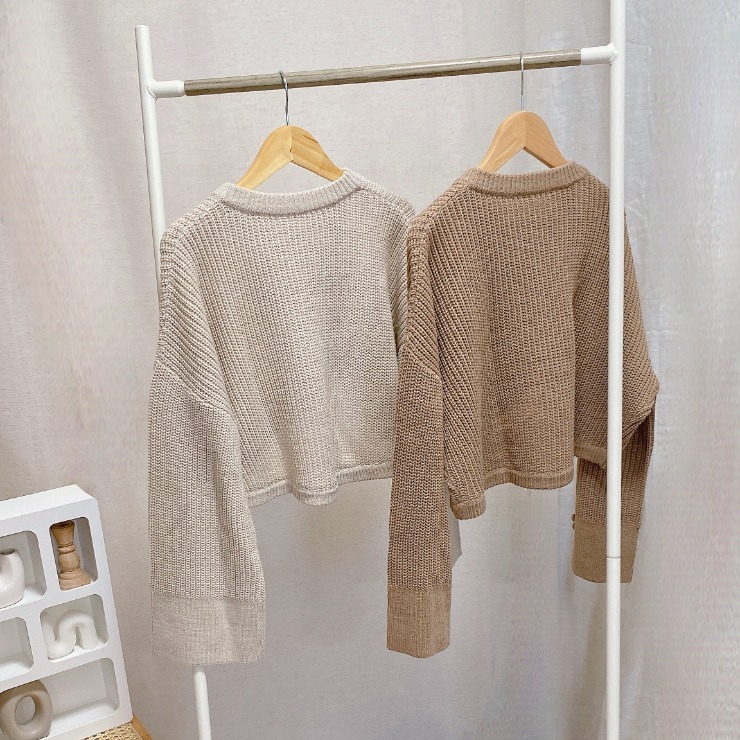 短丈のニットカーディガン。他のアイテムと着合わせて冬のおしゃれコーディネートを!