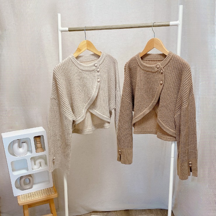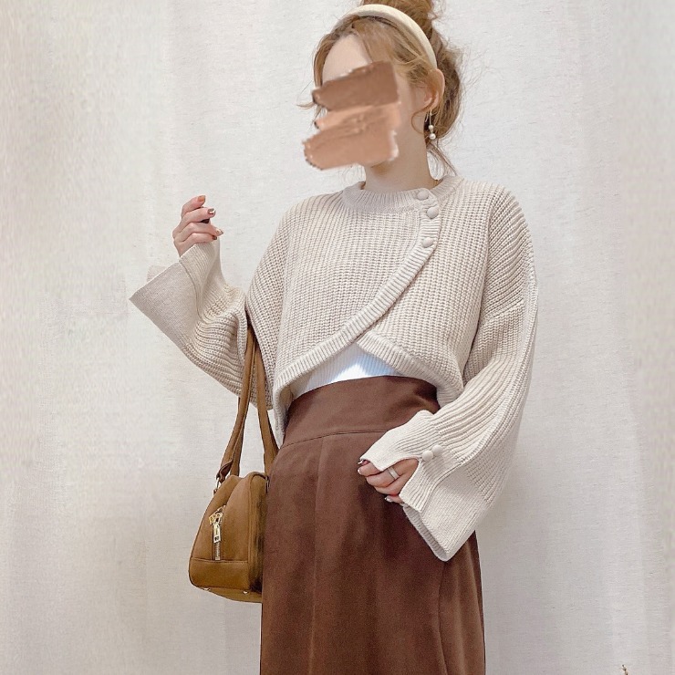 短丈のニットカーディガン。他のアイテムと着合わせて冬のおしゃれコーディネートを!
