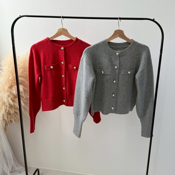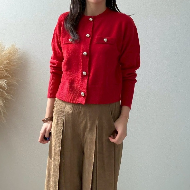 ゴールドボタンがアクセントのショート丈ニットカーディガン♪