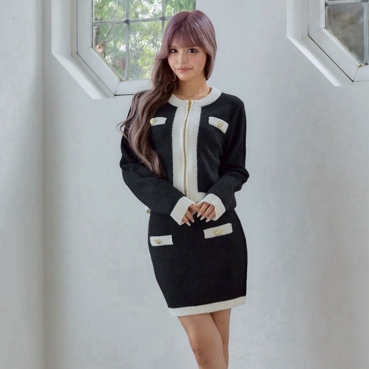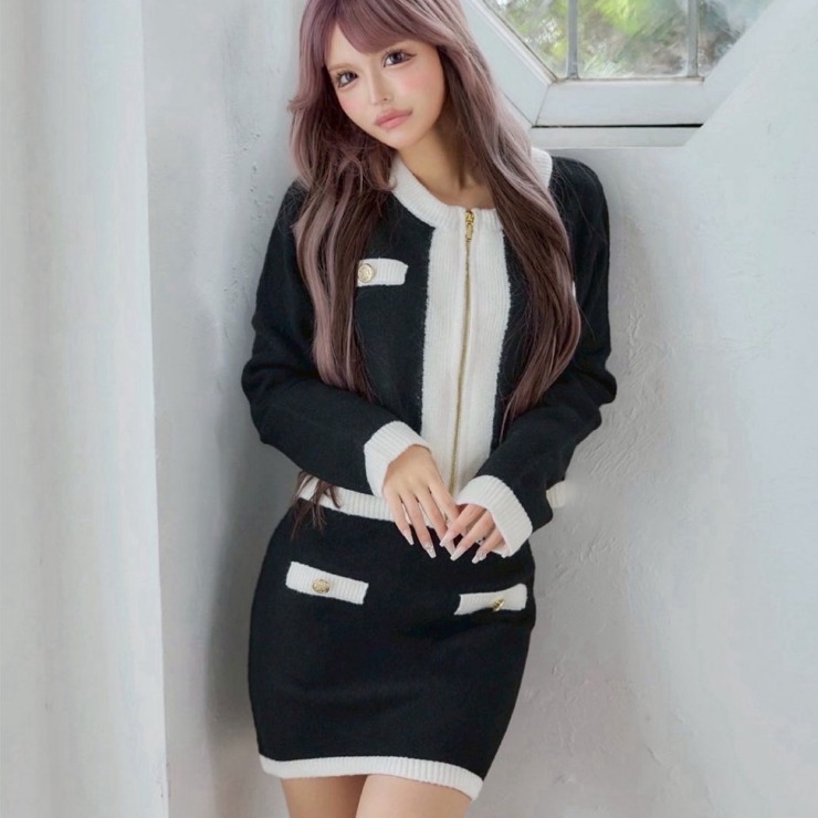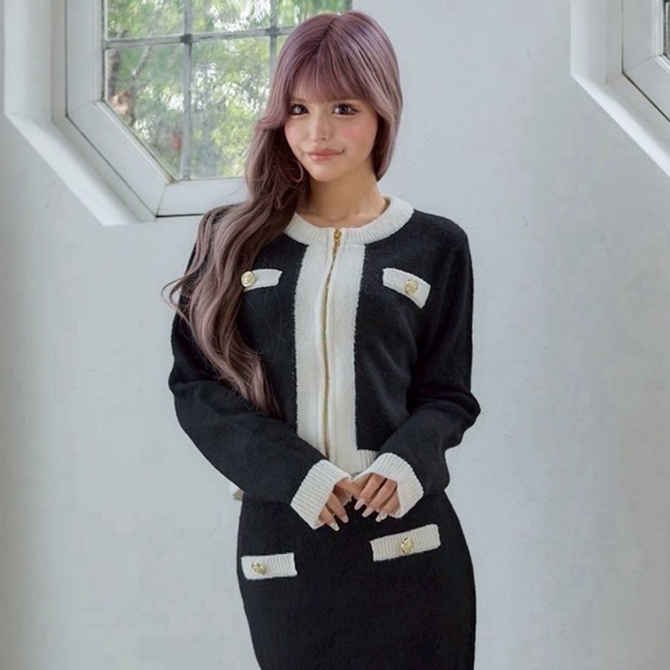 レディース 配色ジップニットカーディガン(今井アンジェリカ)