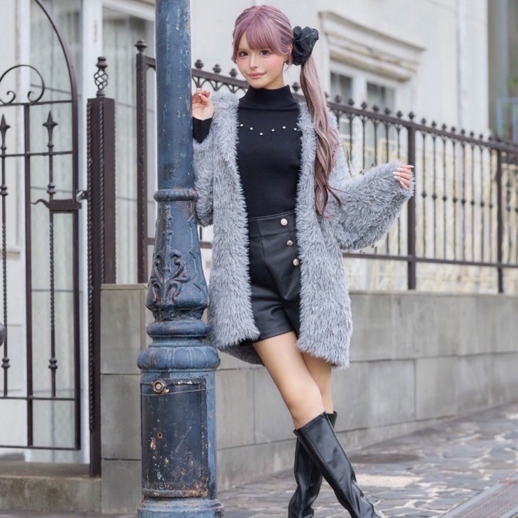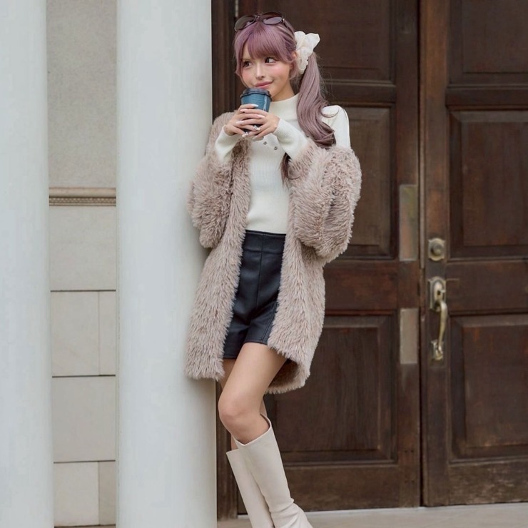 ふんわりファー見え素材で、羽織るだけでシーズンムード高まるニットカーデ。