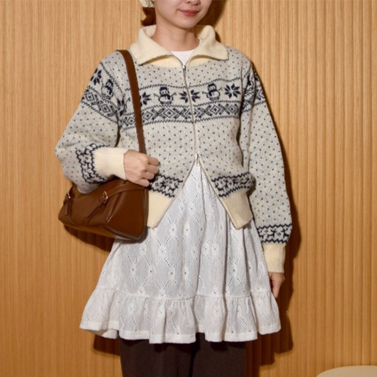 レディース ノルディック柄Wジップニットカーディガン(ちょこび)